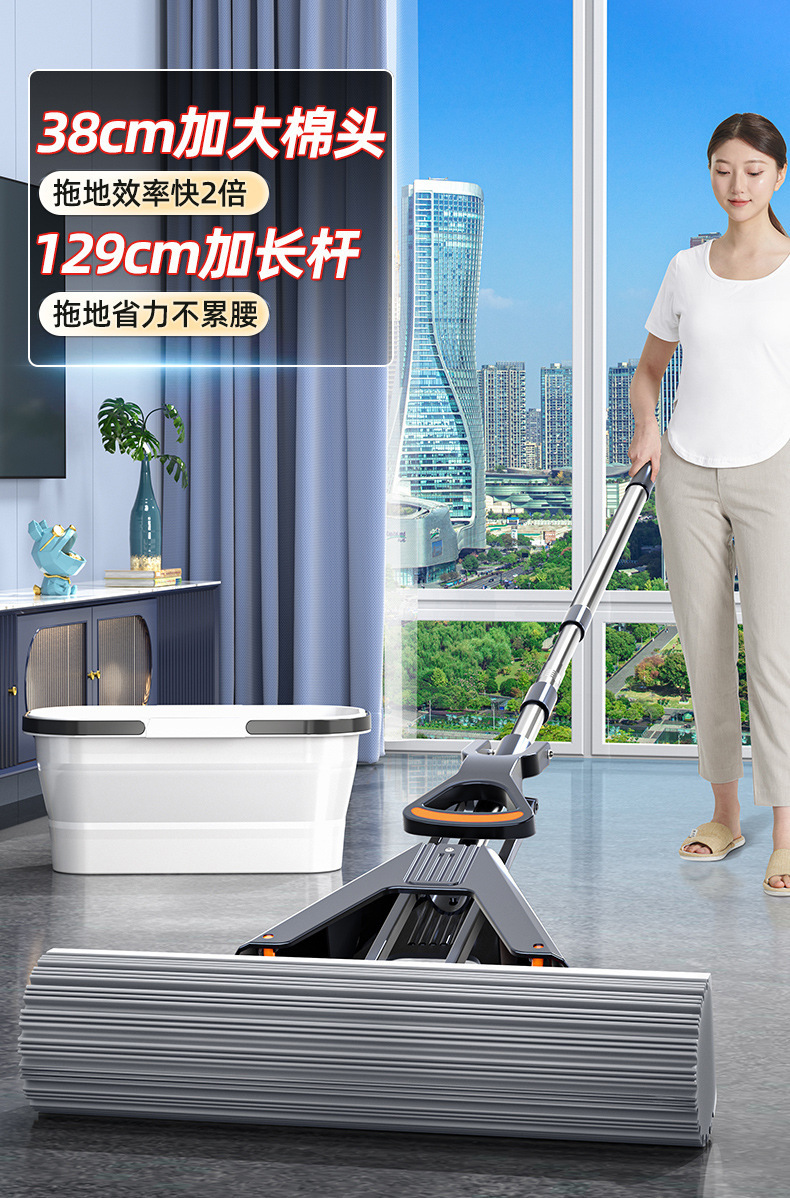 35cm thick plus-sized sponge mop +4 cotton heads [reinforced stainless steel rod]]