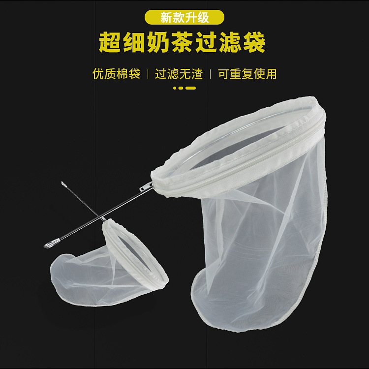 1、大号奶茶过滤袋及圈,与保温奶茶桶如13L保温茶桶等一起使用,主要用于大量过滤时使用,