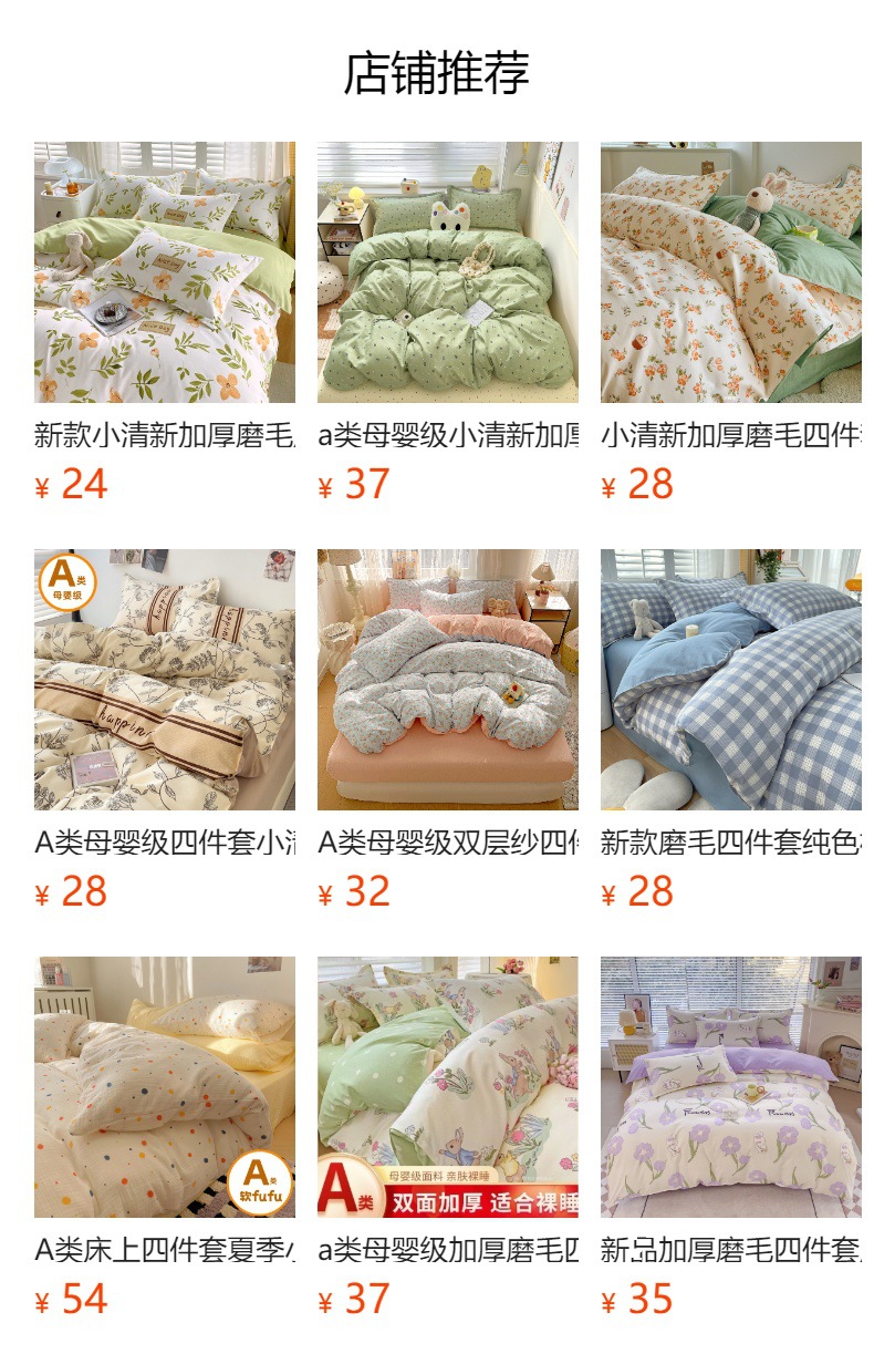 | [bed sheet] 1.8 four-piece set [quilt cover 200*230 bed sheet 240*245 pillowcase two]] | CN¥ 70.0 |