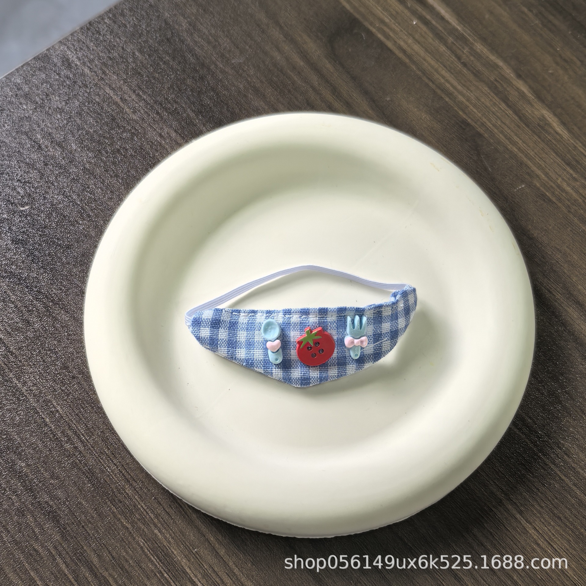 blue plaid tomato bib