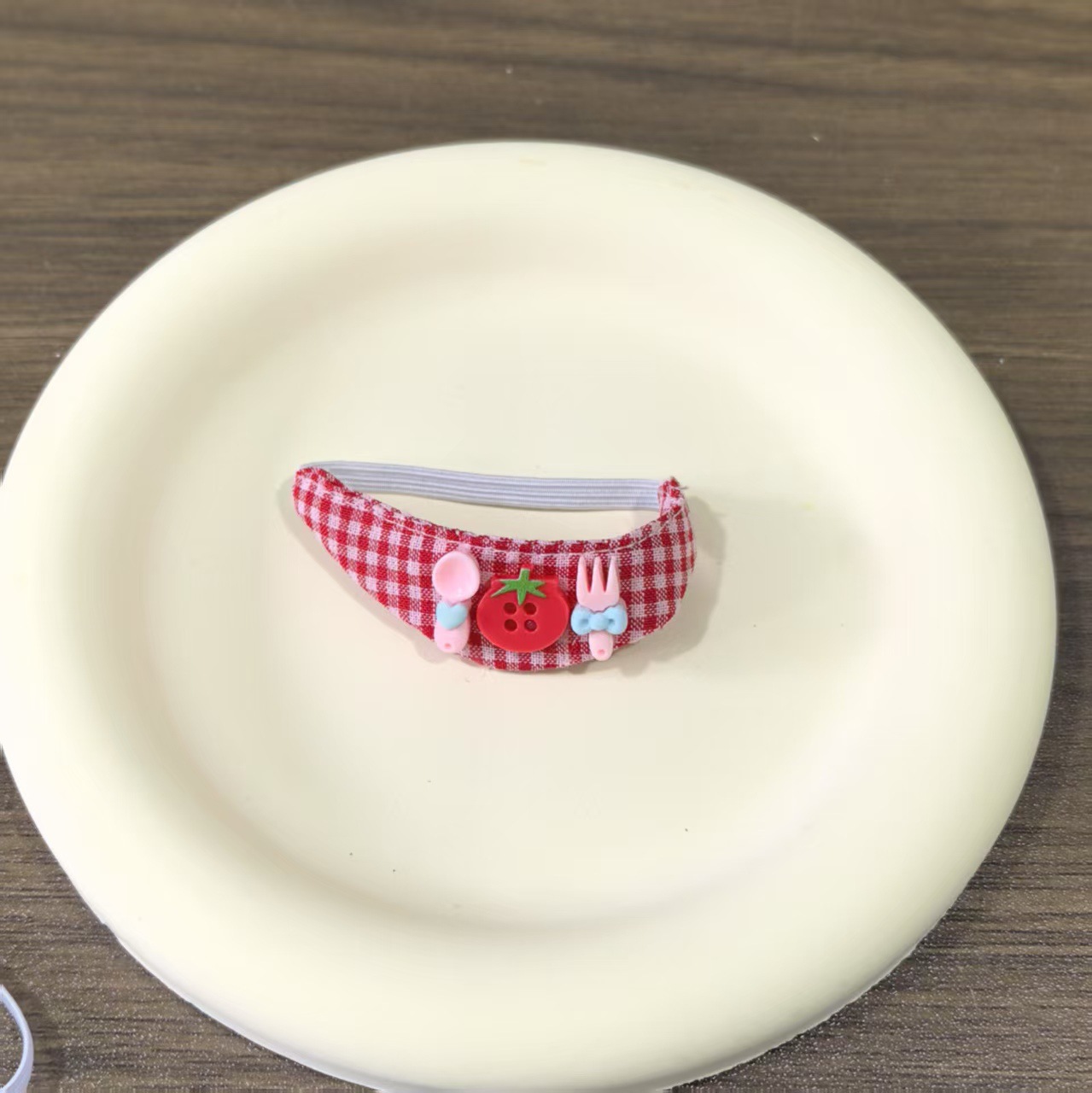 red plaid tomato bib