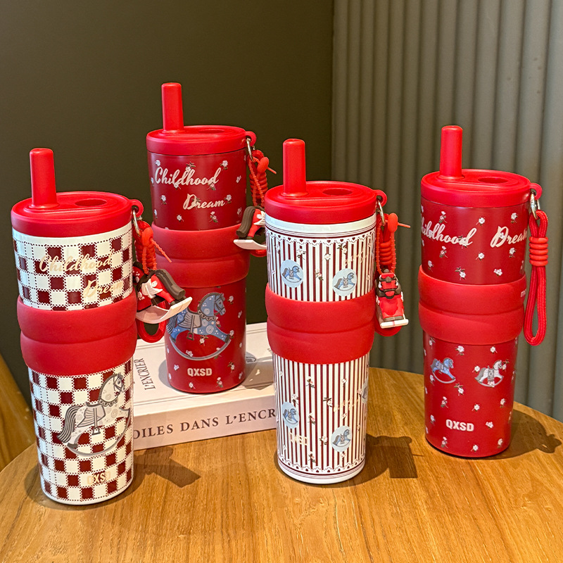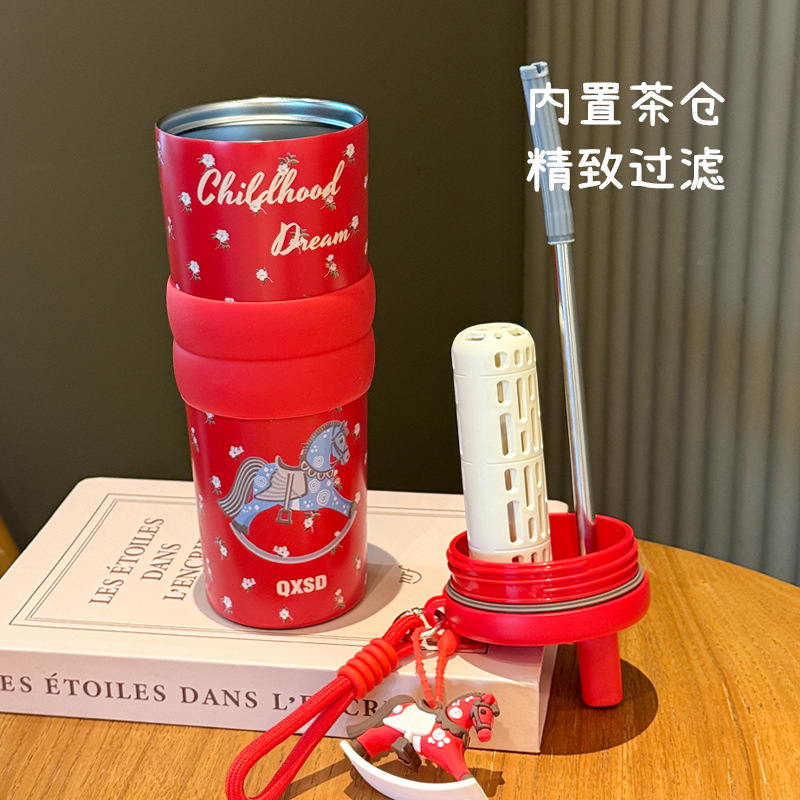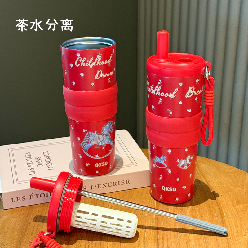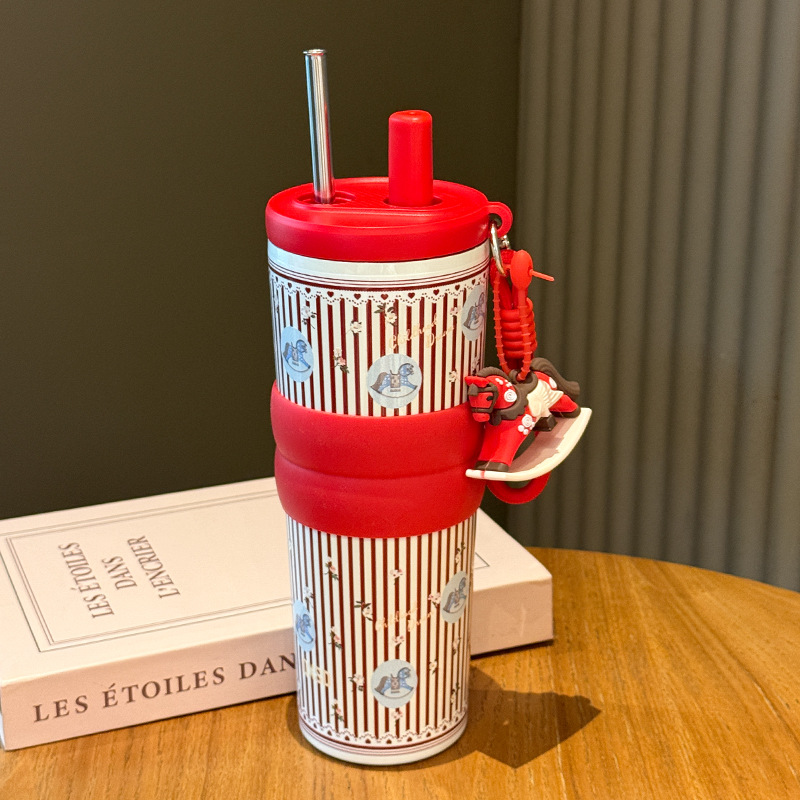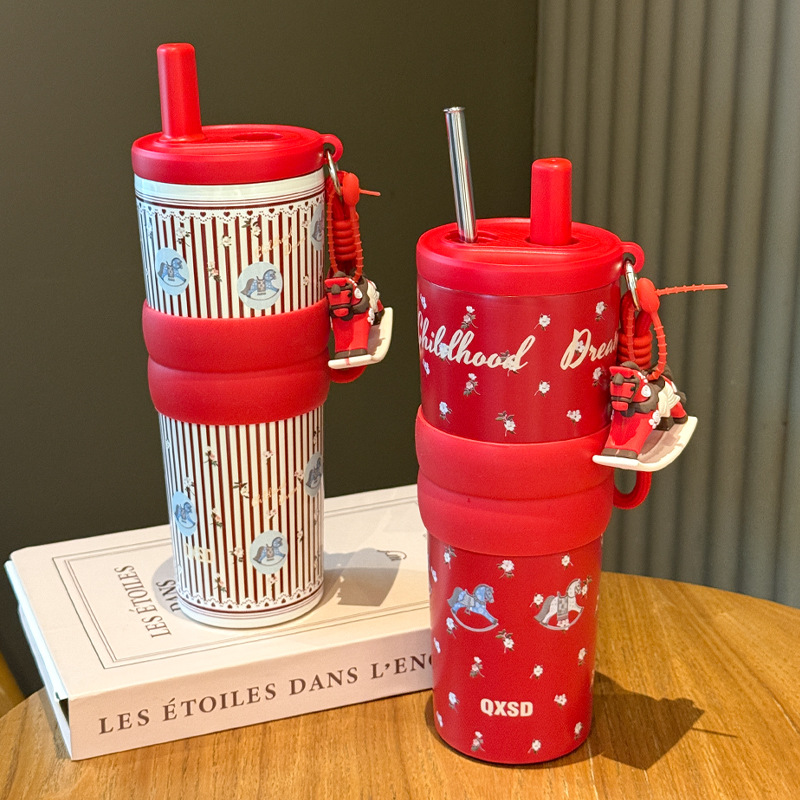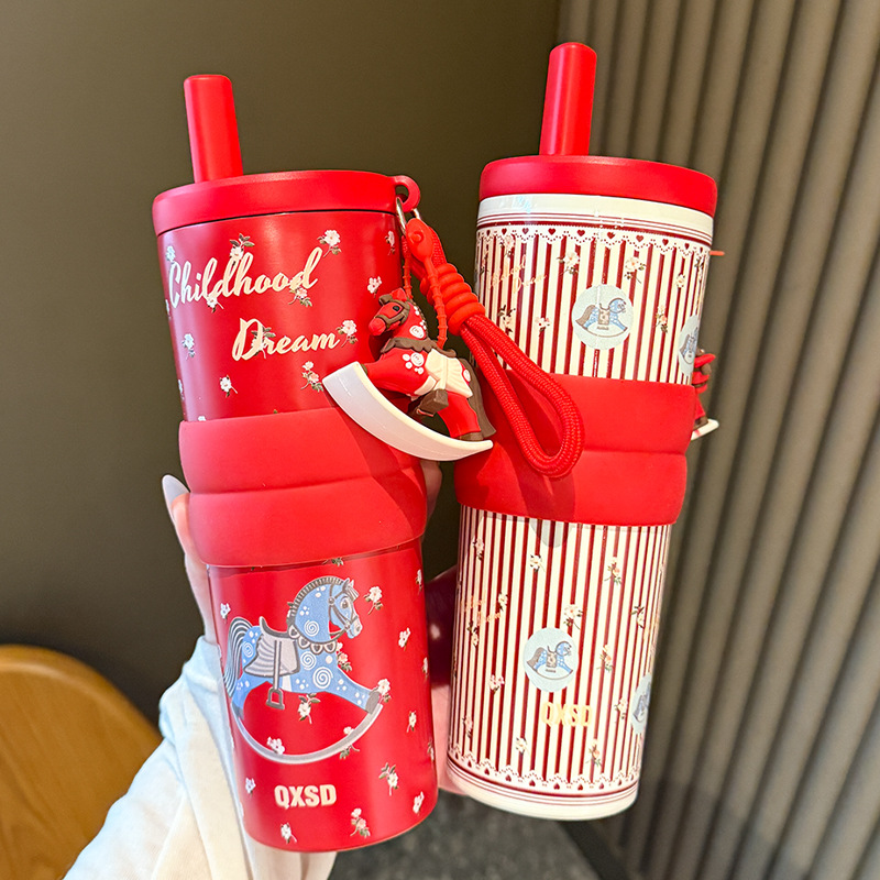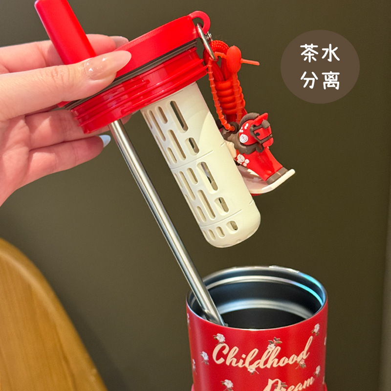 creative rotational trojan straw coffee cup good-looking 316 stainless steel vacuum cup large capacity portable vehicle-borne cup
