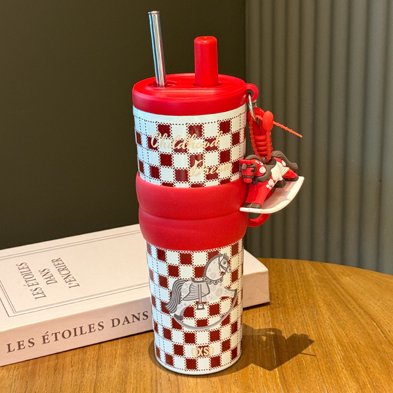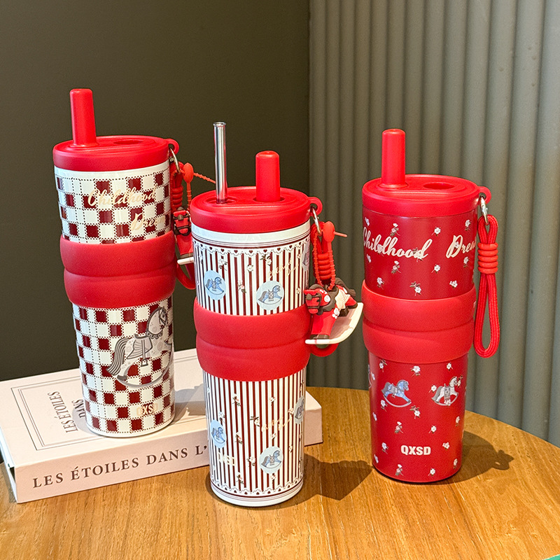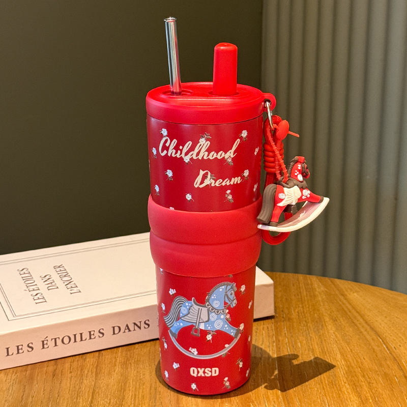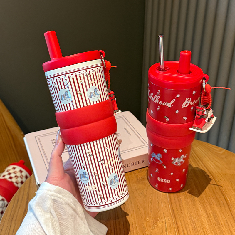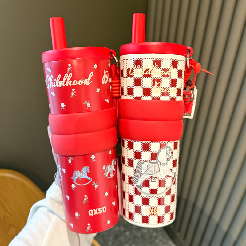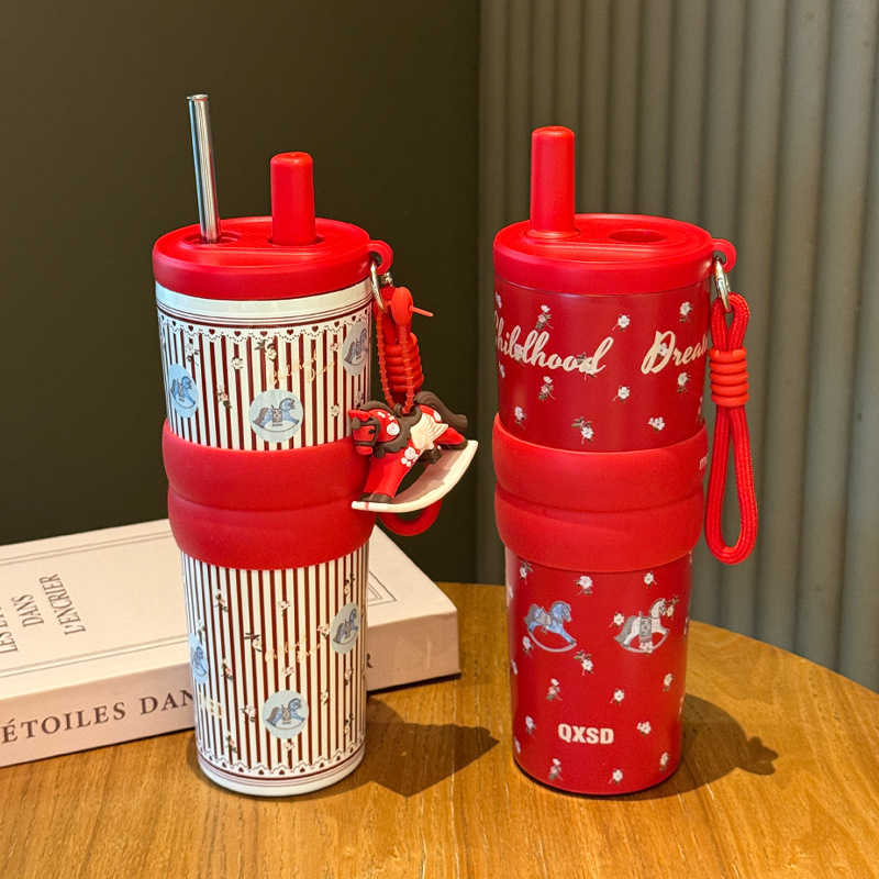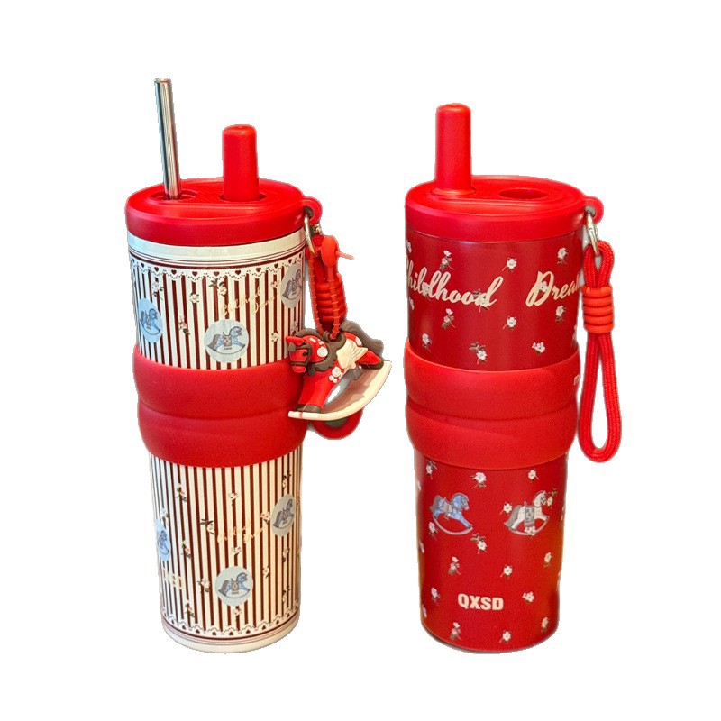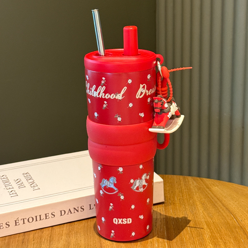 creative rotational trojan straw coffee cup good-looking 316 stainless steel vacuum cup large capacity portable vehicle-borne cup