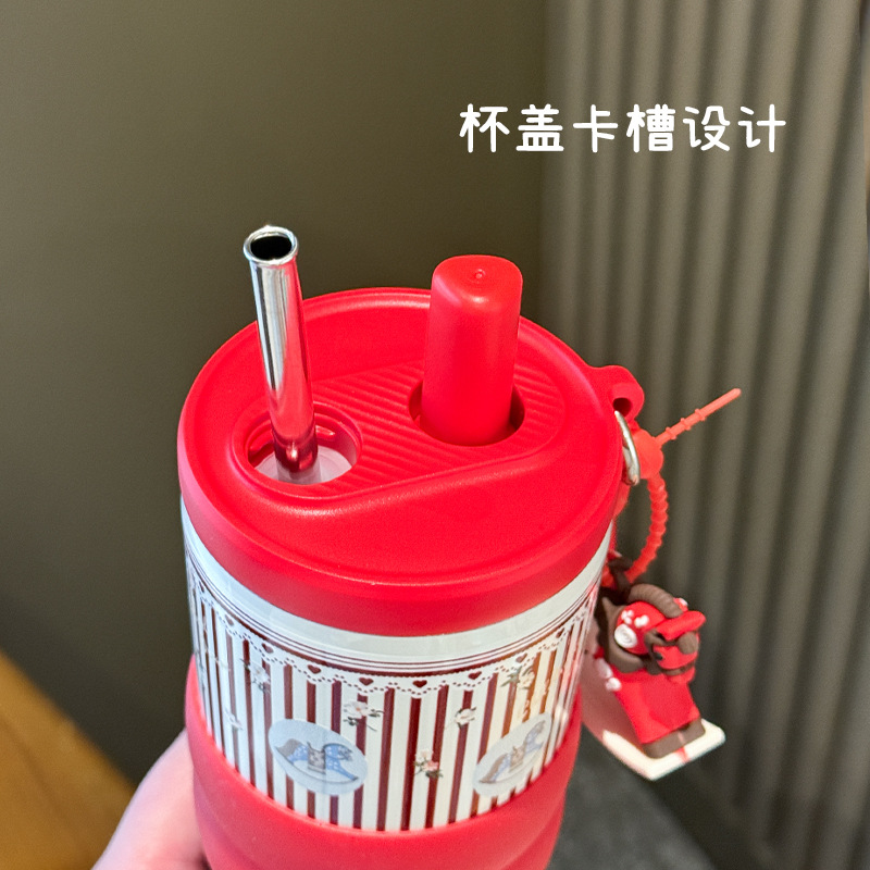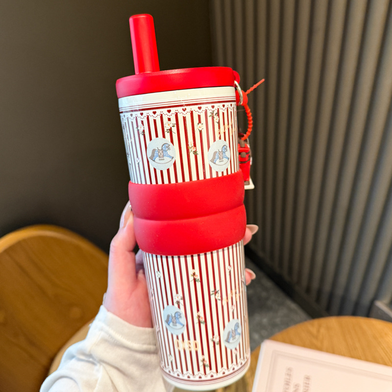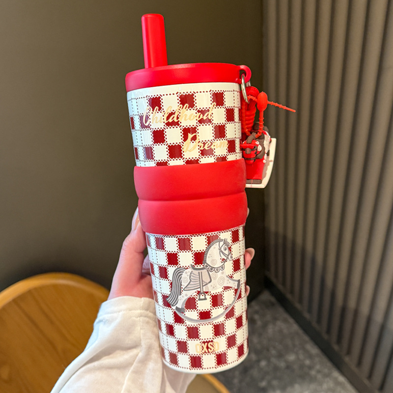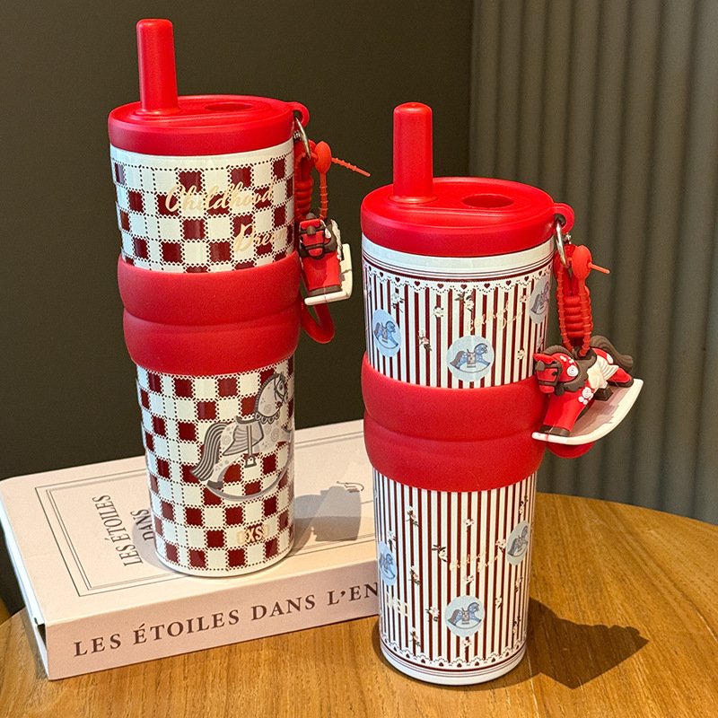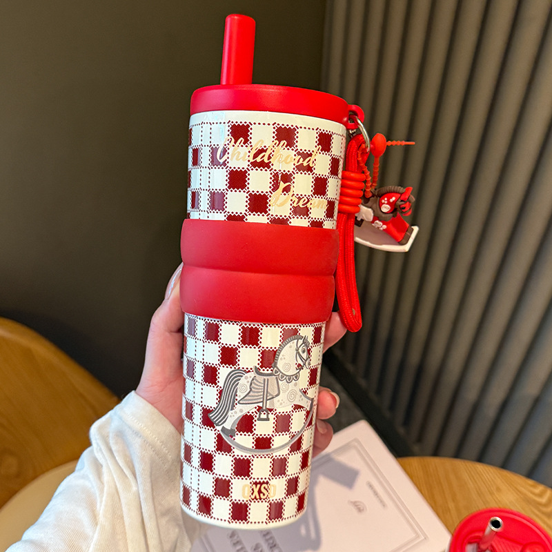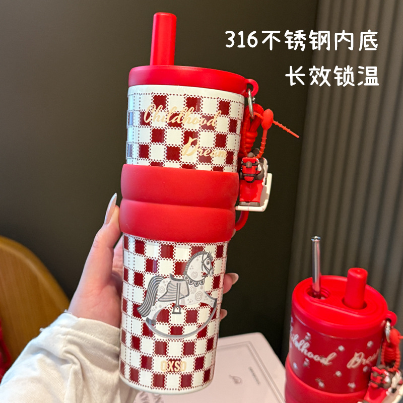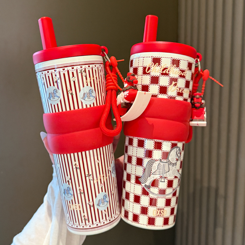 creative rotational trojan straw coffee cup good-looking 316 stainless steel vacuum cup large capacity portable vehicle-borne cup