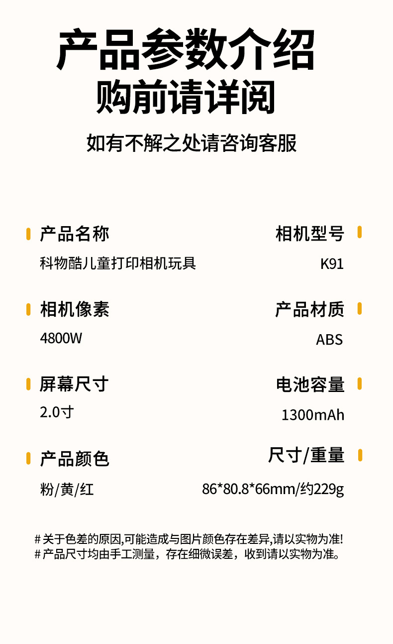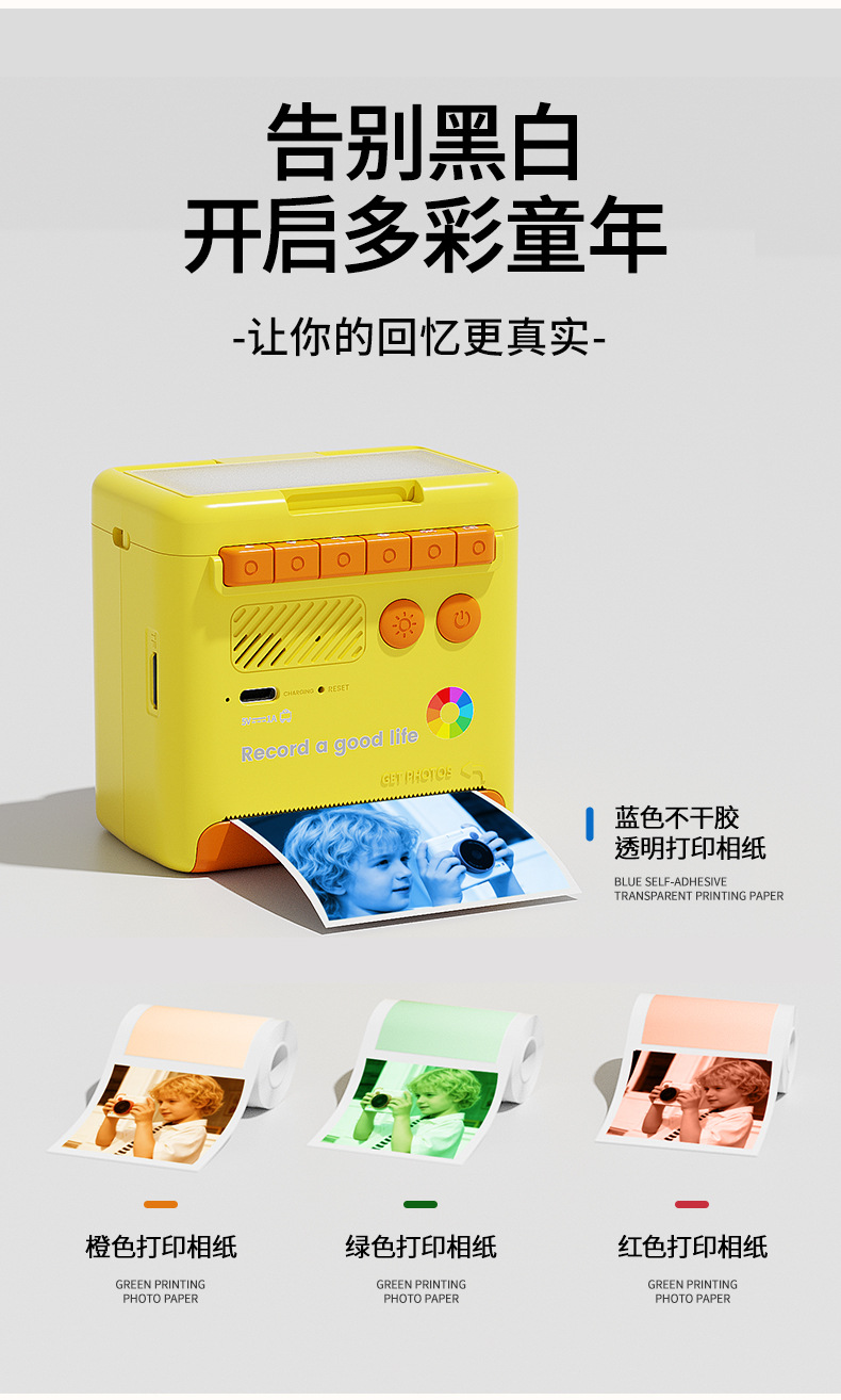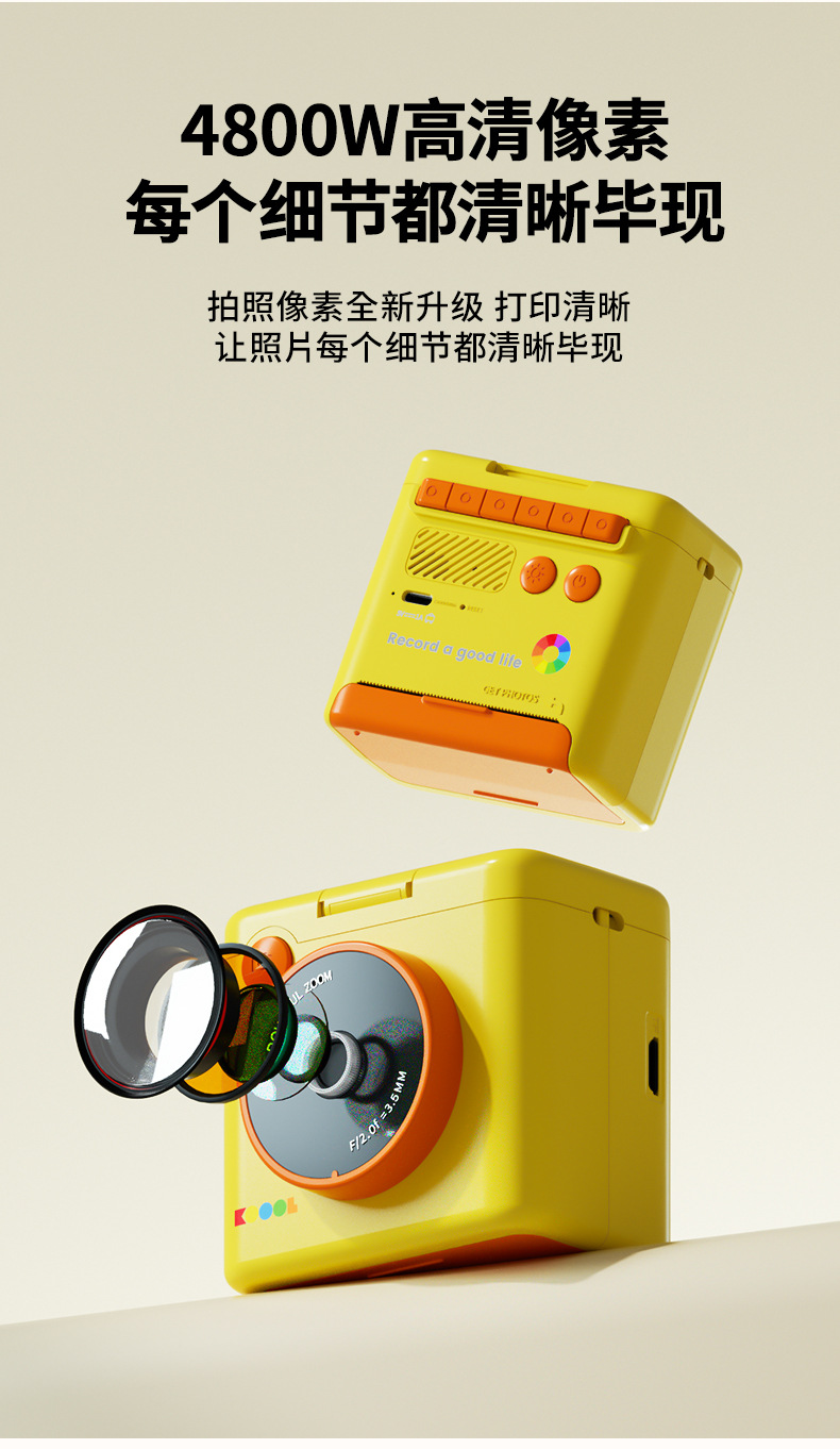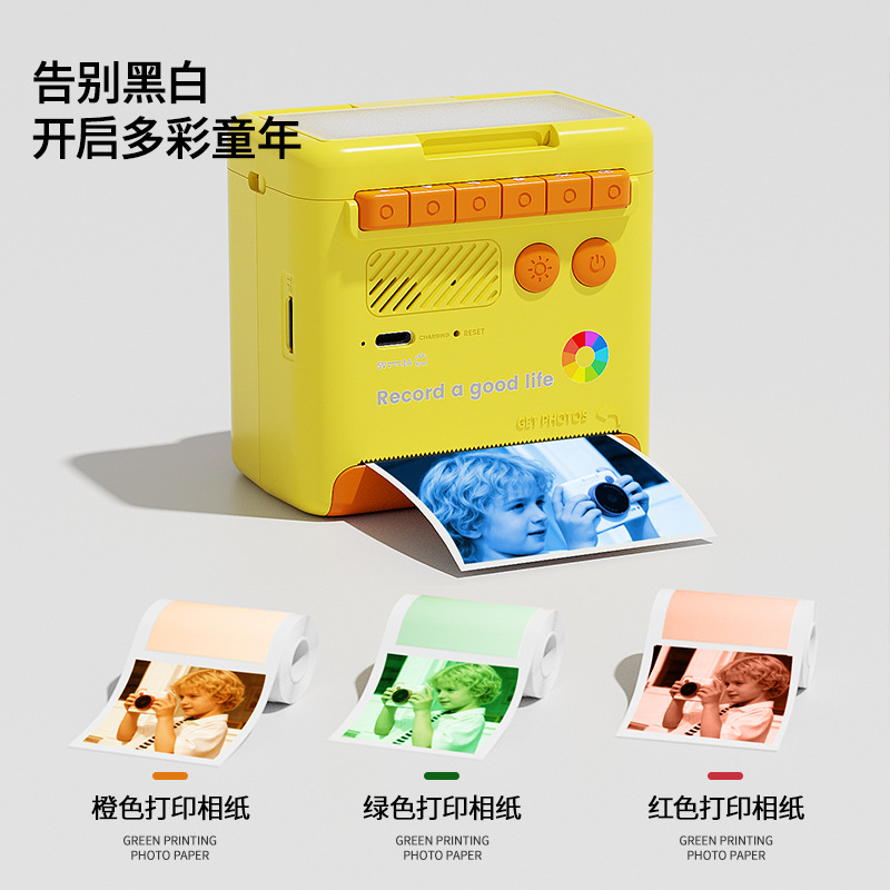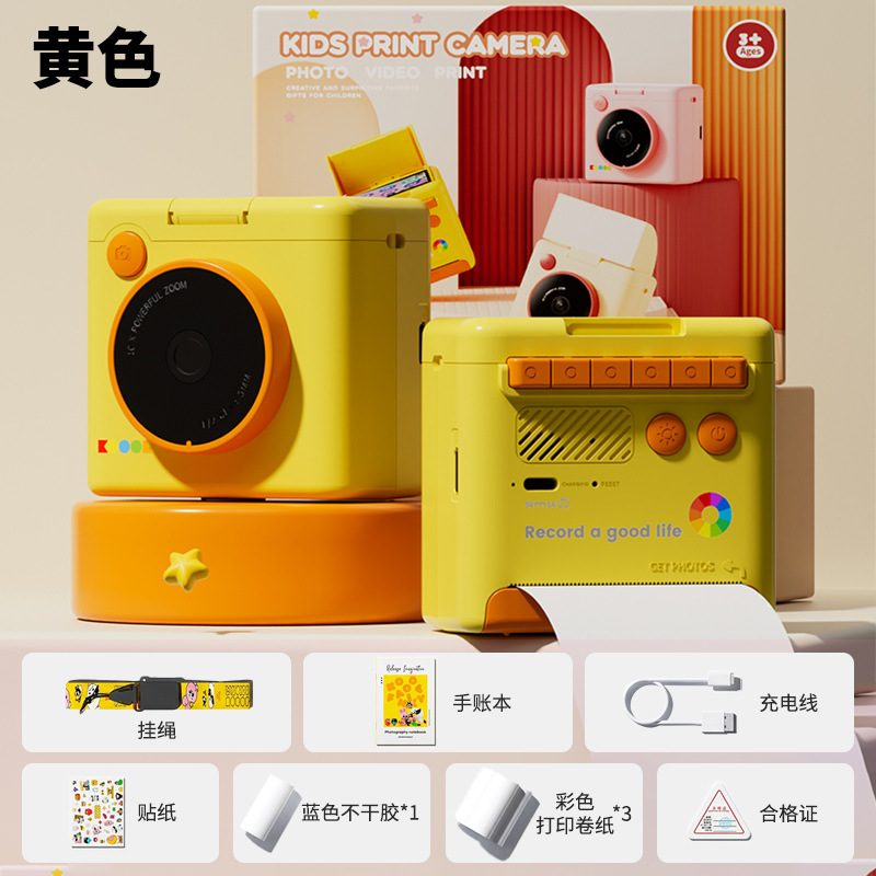 yellow polaroid +4 rolls of color photo paper (no memory) + lanyard + journal book + stickers