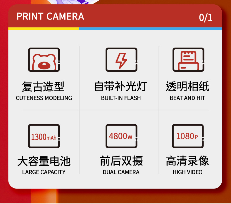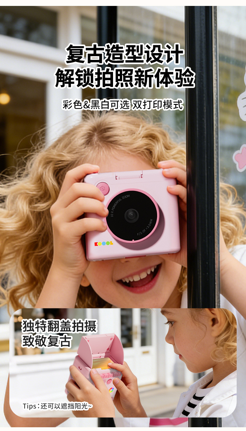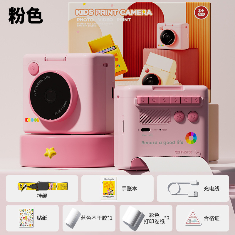 pink polaroid +4 rolls of color photo paper (no memory) + lanyard + journal book + stickers