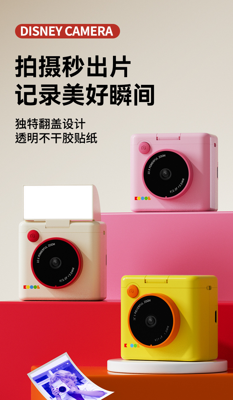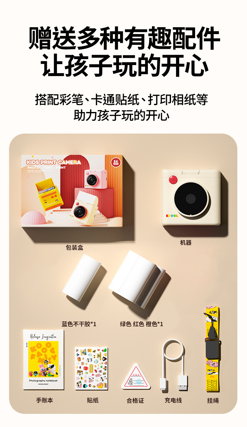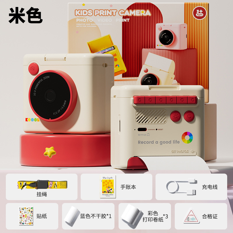 beige polaroid +4 rolls of color photo paper (no memory) + lanyard + journal book + stickers