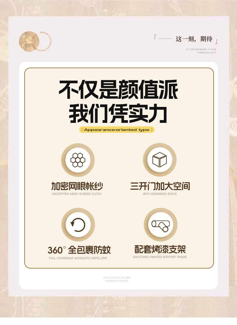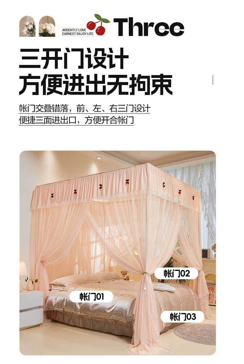 三开门花边落地蚊帐/轻奢蕾丝花边蚊帐/加高花边落地蚊帐