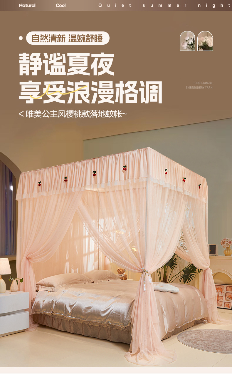 加密花边落地蚊帐/韩式花边落地蚊帐/ 仙女风花边蚊帐/卧室花边落地蚊帐/A类母婴花边蚊帐/可拆洗花边蚊帐/四季通用花边蚊帐/2026新款花边落地蚊帐/
