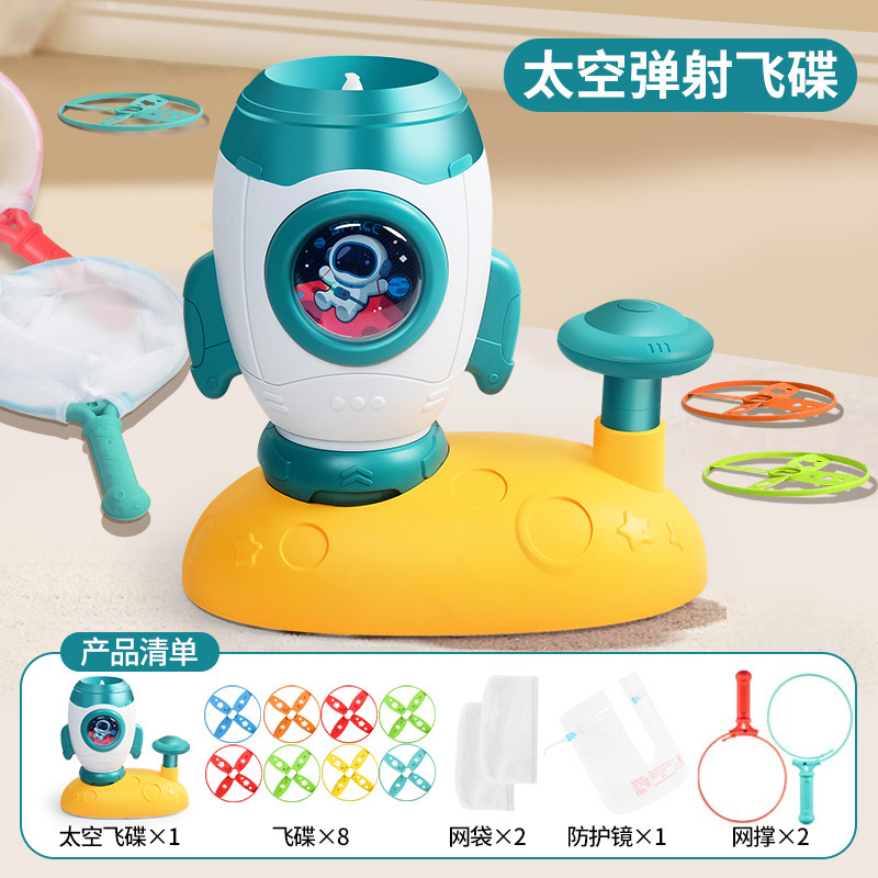 rocket flying saucer [8 flying saucers, 2 net pockets, 2 net stands, 1 protective eyewear]
