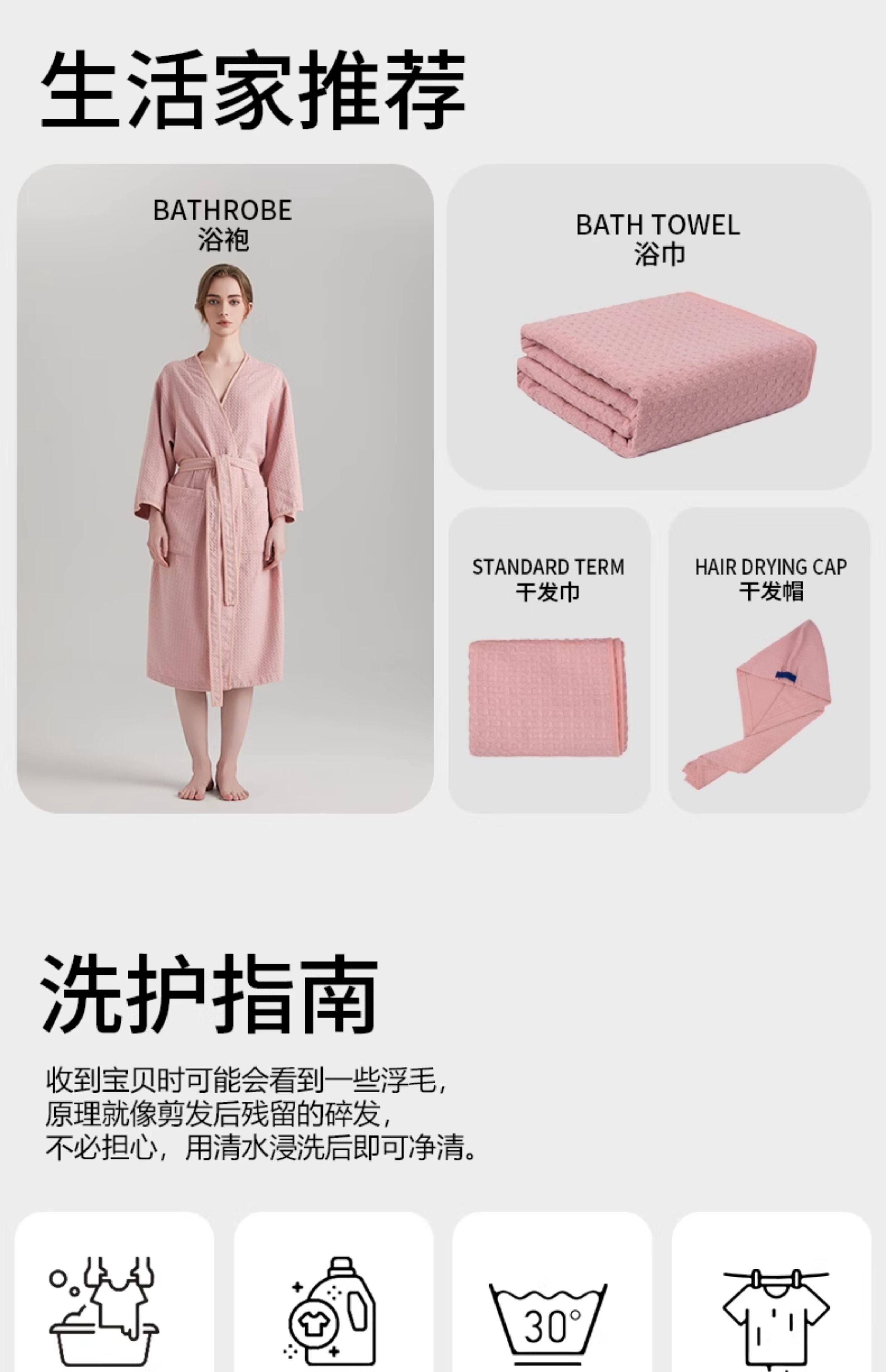 hair-drying cap + hair drying towel + bath towel (pink)