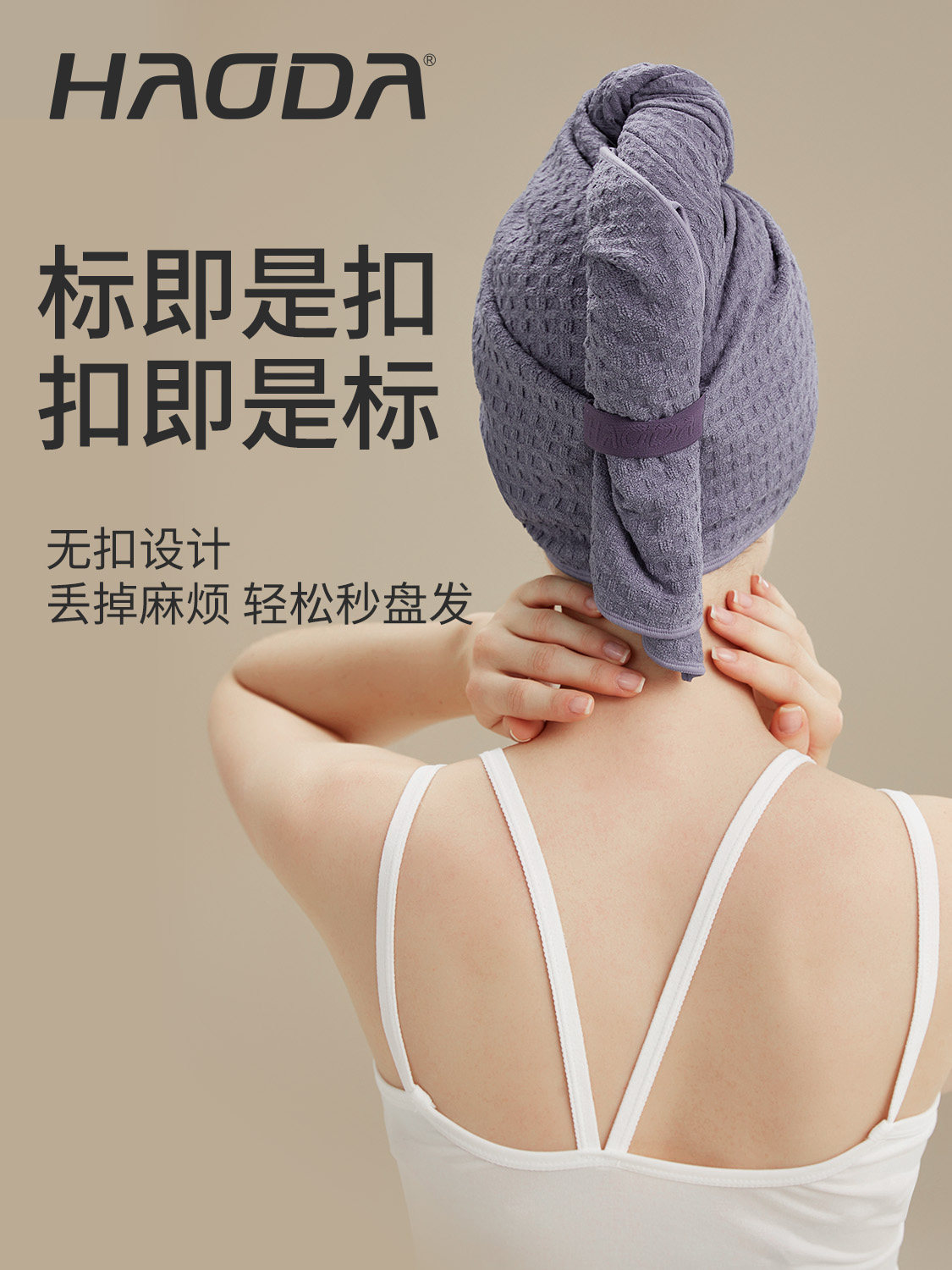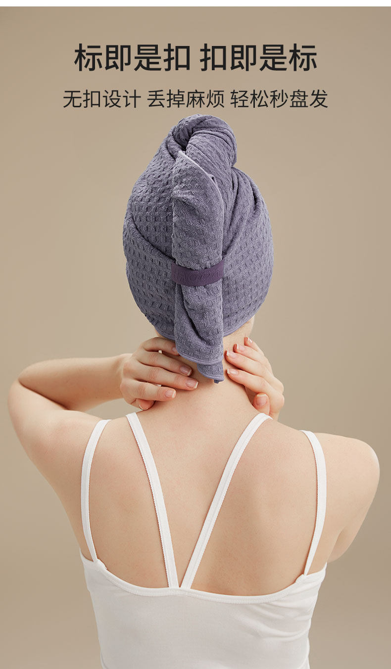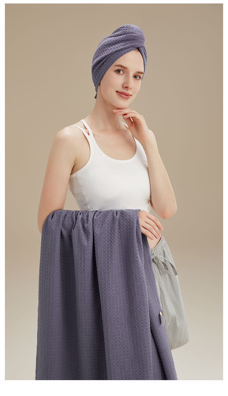 gray purple-waffle hair-drying cap 28*77cm