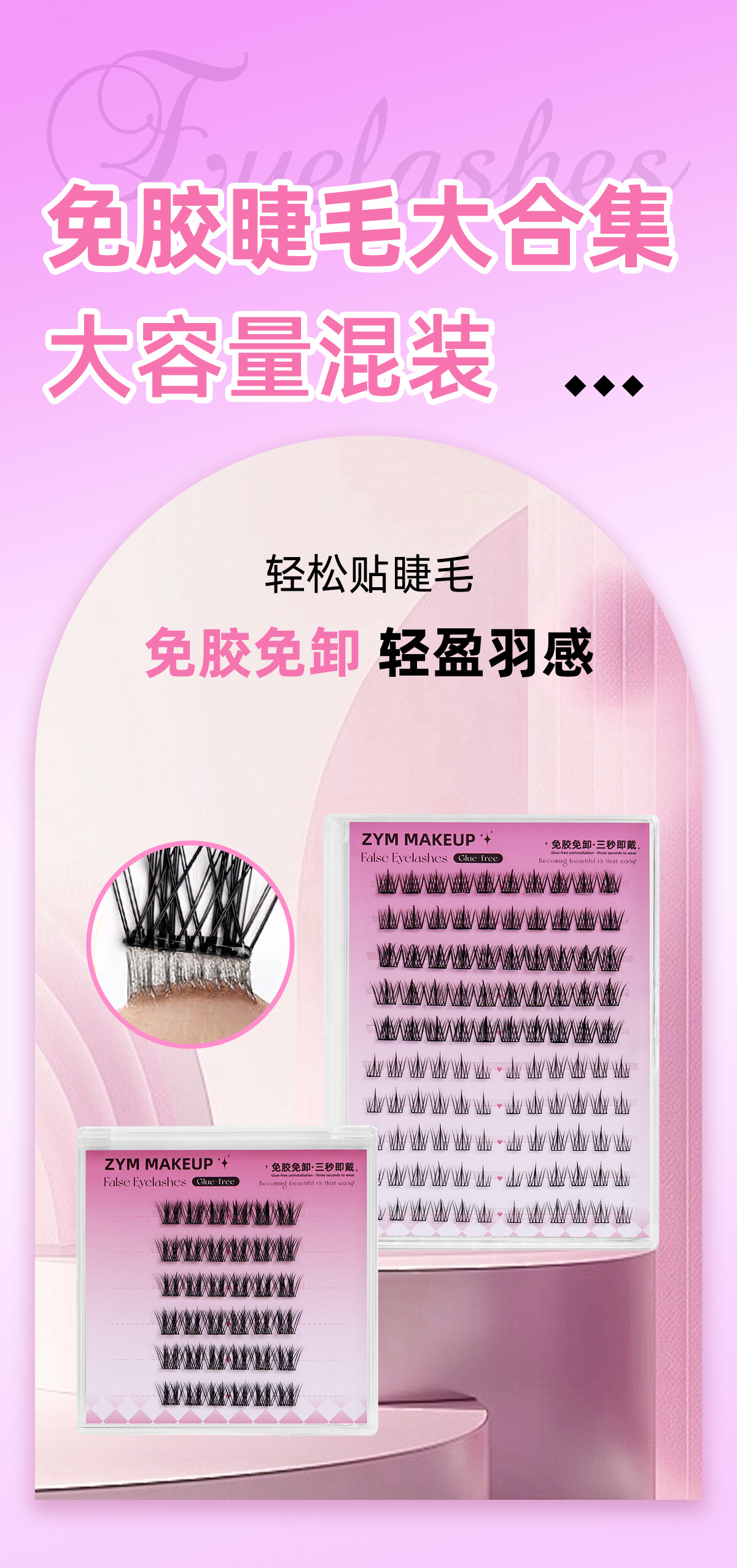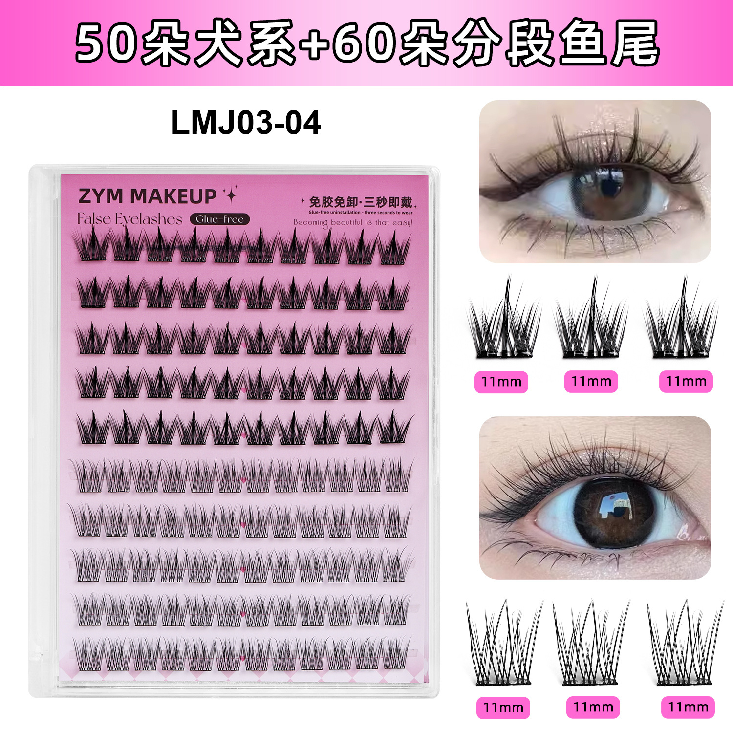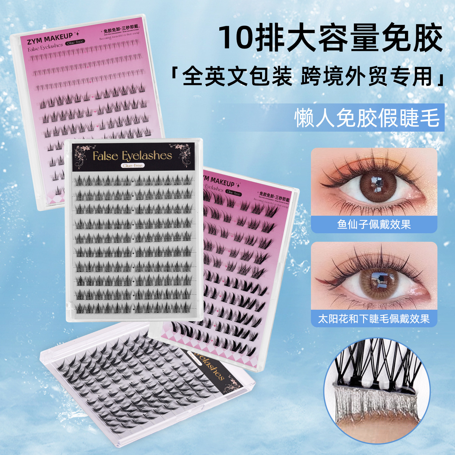 Qingdao Pingdu No-Glue False Eyelashes Mix Pack, Natural No-Removal Fox Style Small Firebrands Lower Eyelashes No Adhesive Water Wholesale