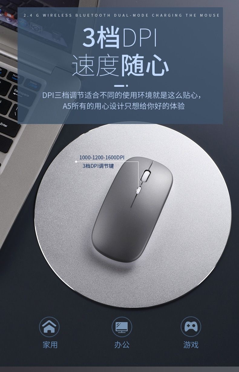 3. 三段可调分辨率:800-1200-1600DPI;