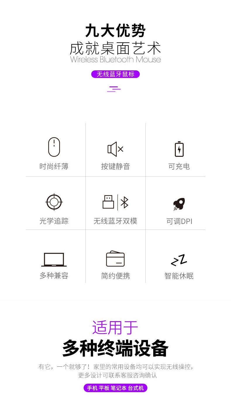 2.4g + bluetooth dual-mode charging-mirror white