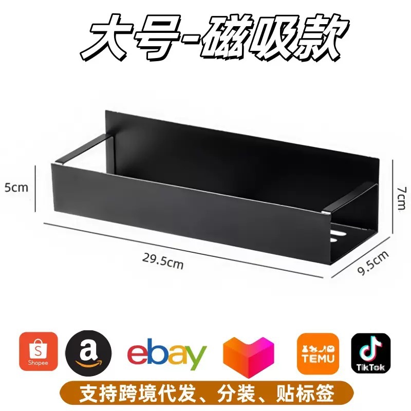 magnetic storage rack, black, large size [with two hooks], carbon steel model