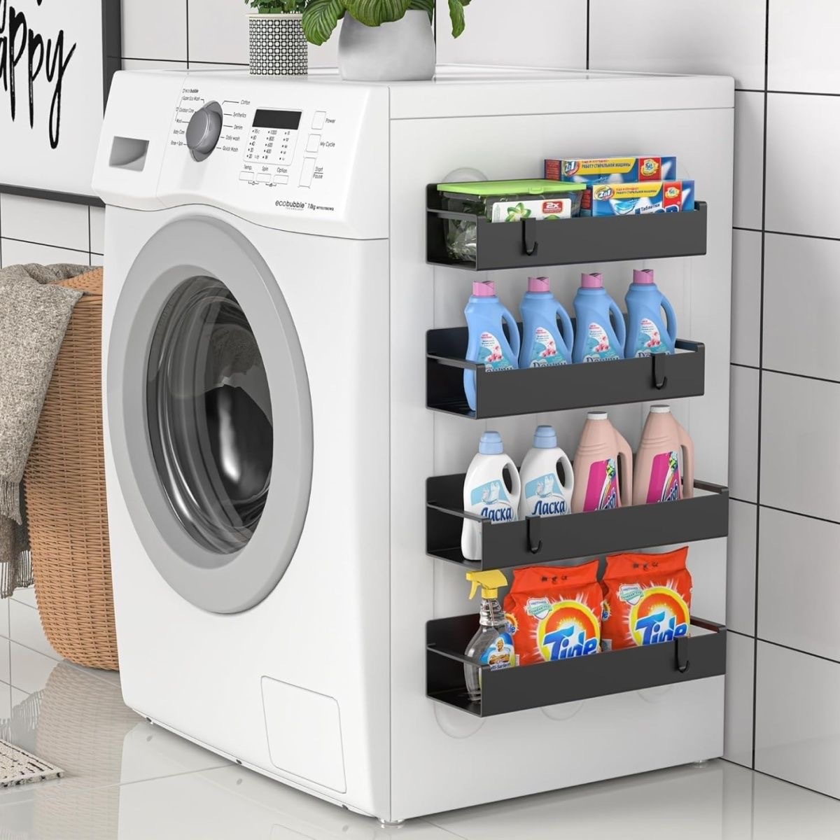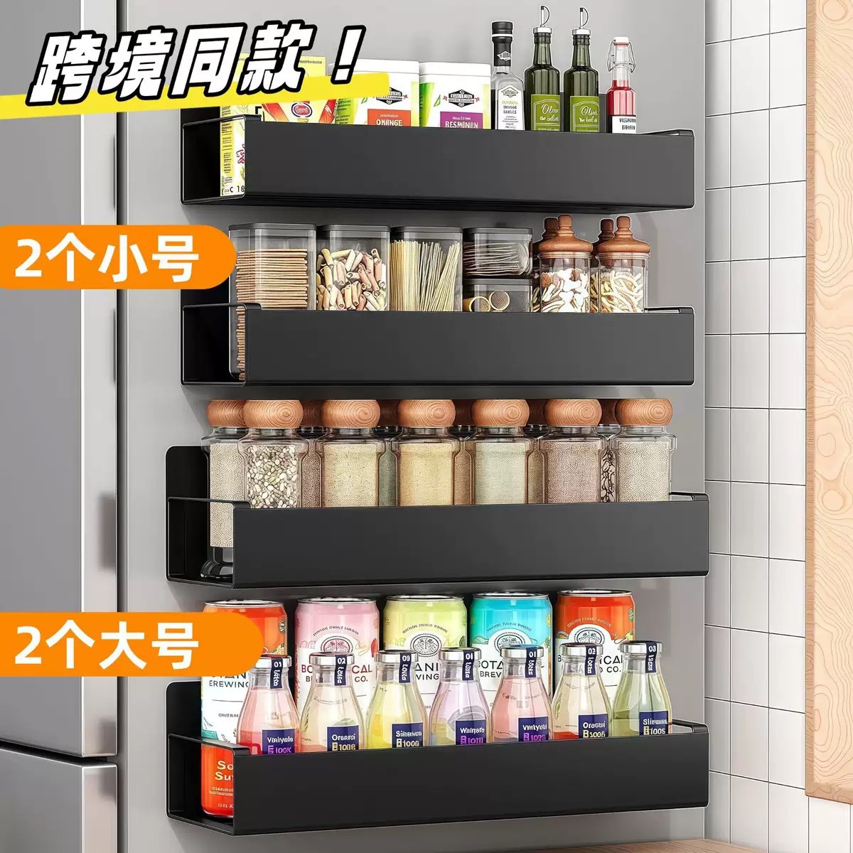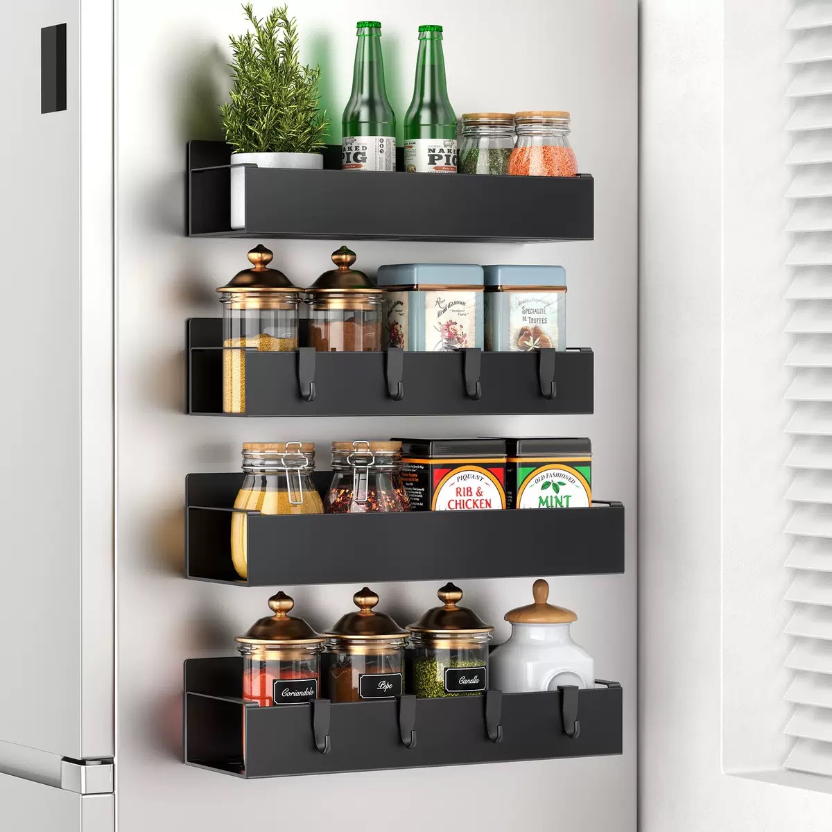 magnetic storage rack black small size large size [with two hooks] carbon steel model