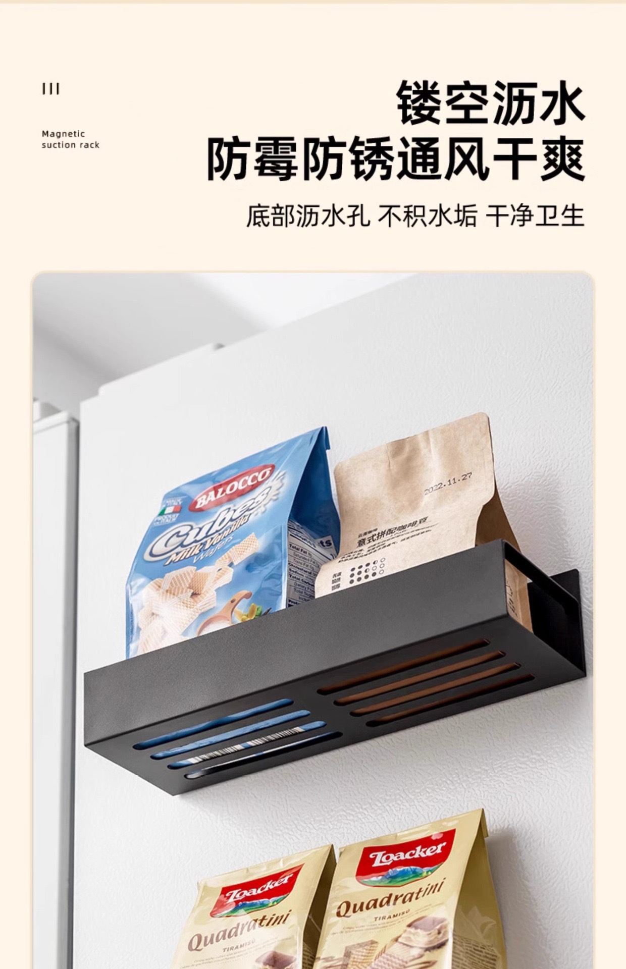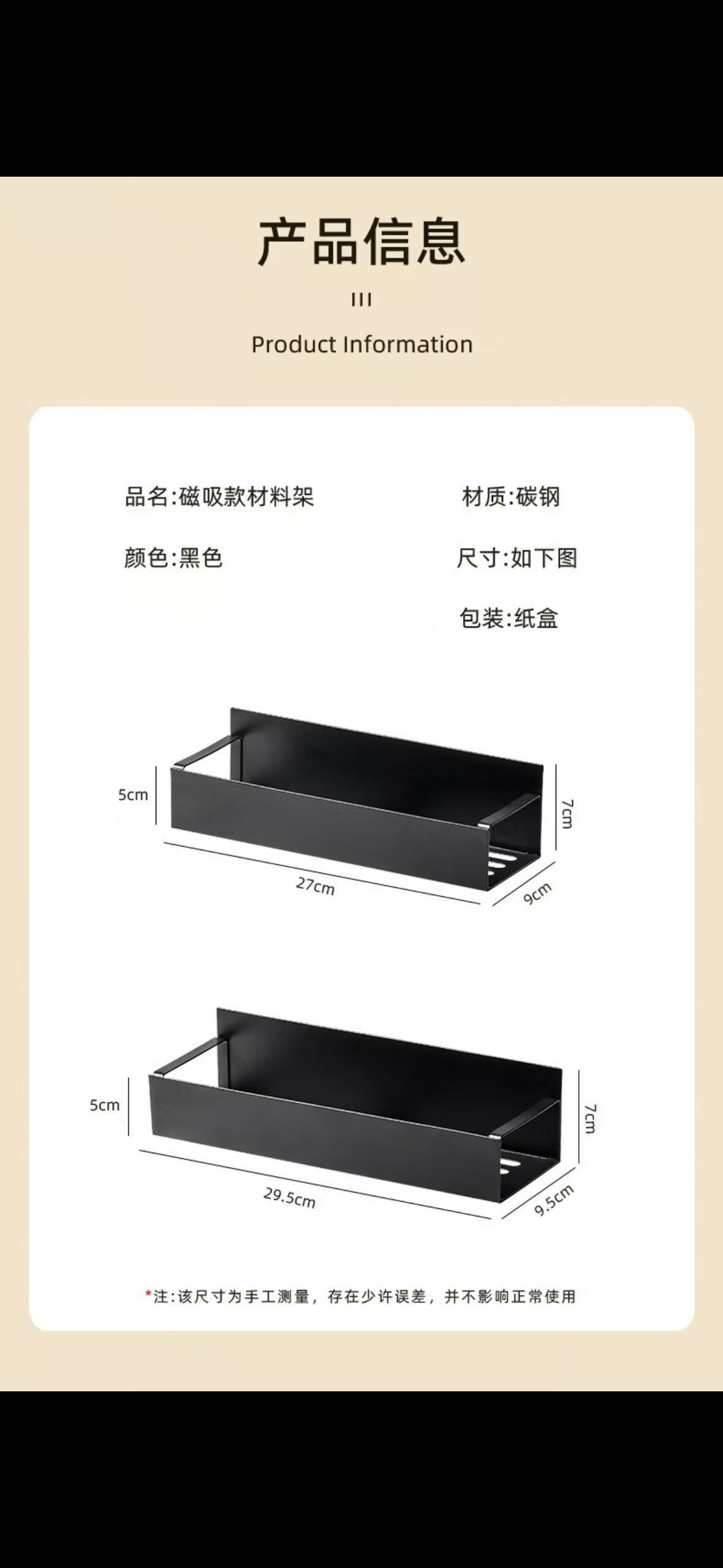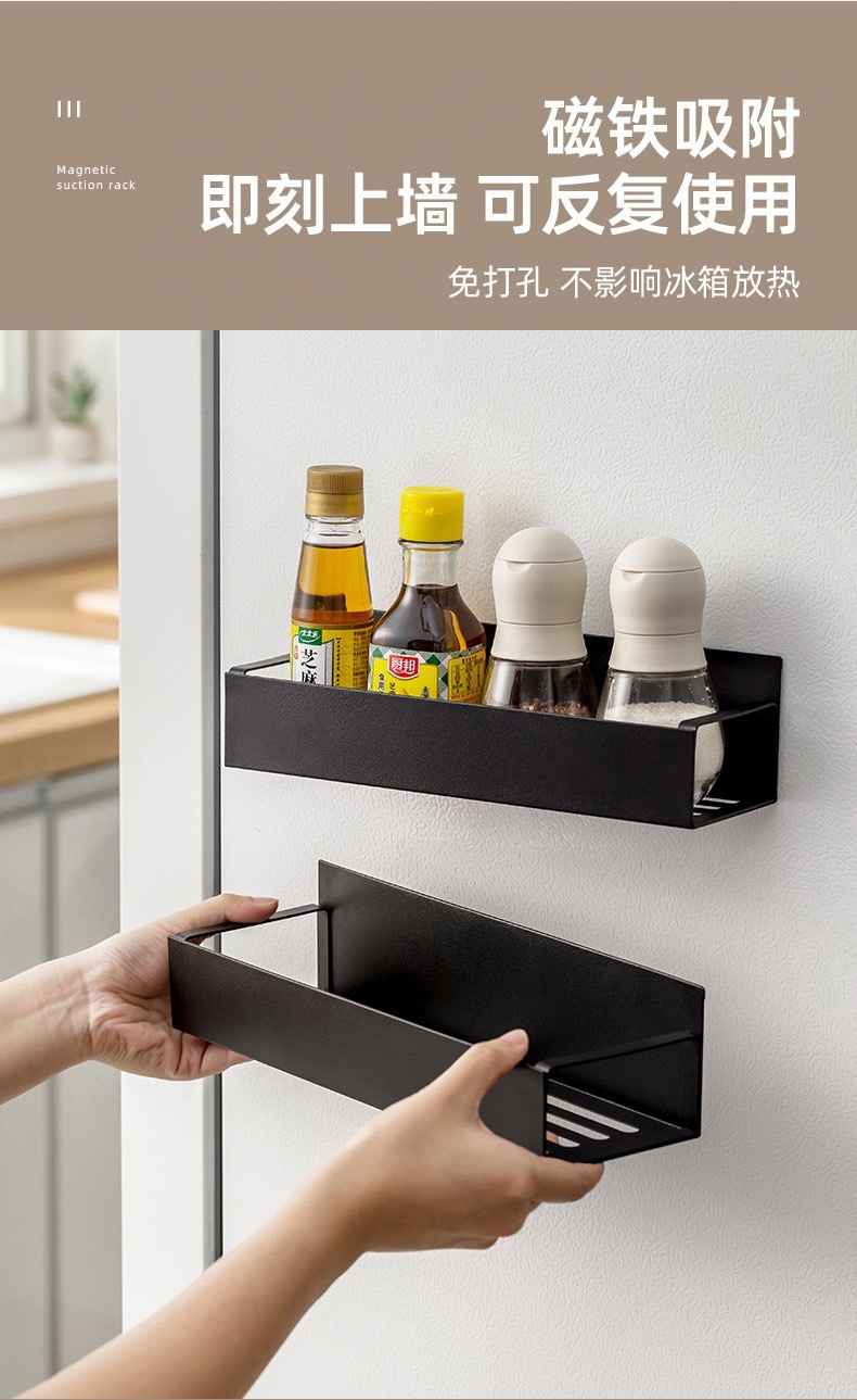 magnetic storage rack, black, small size [with two hooks], carbon steel model