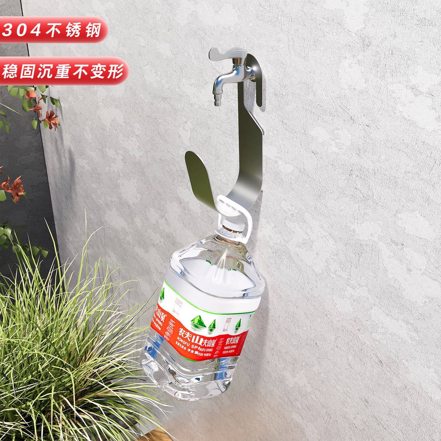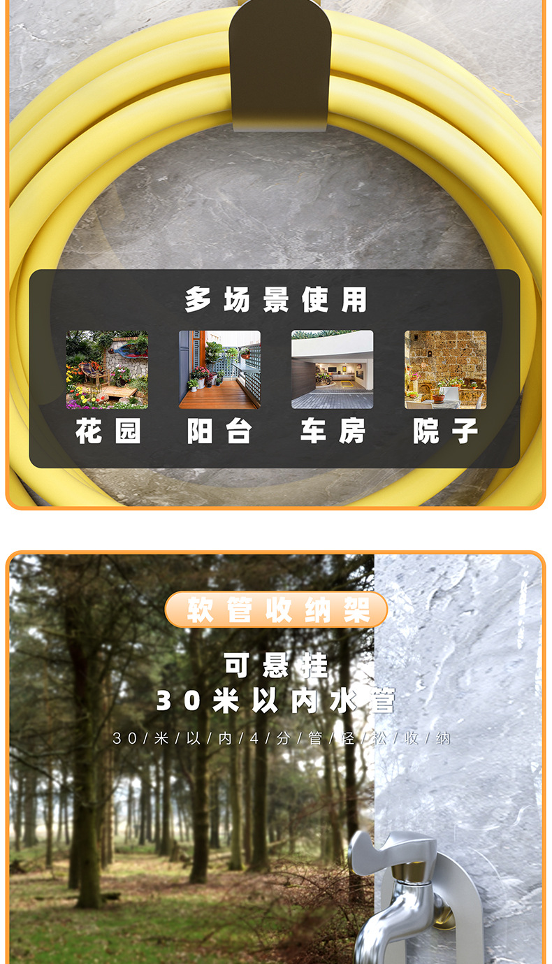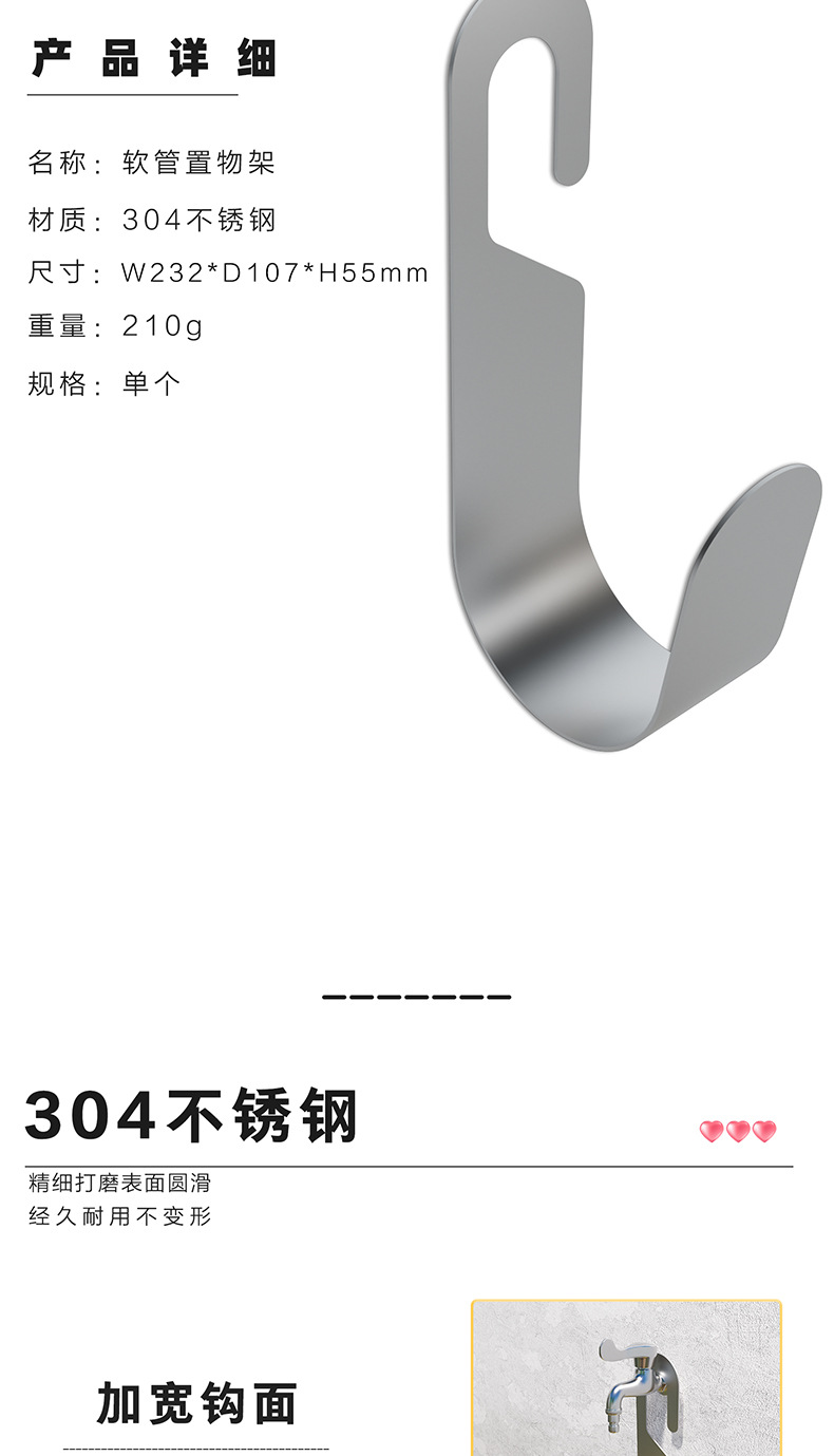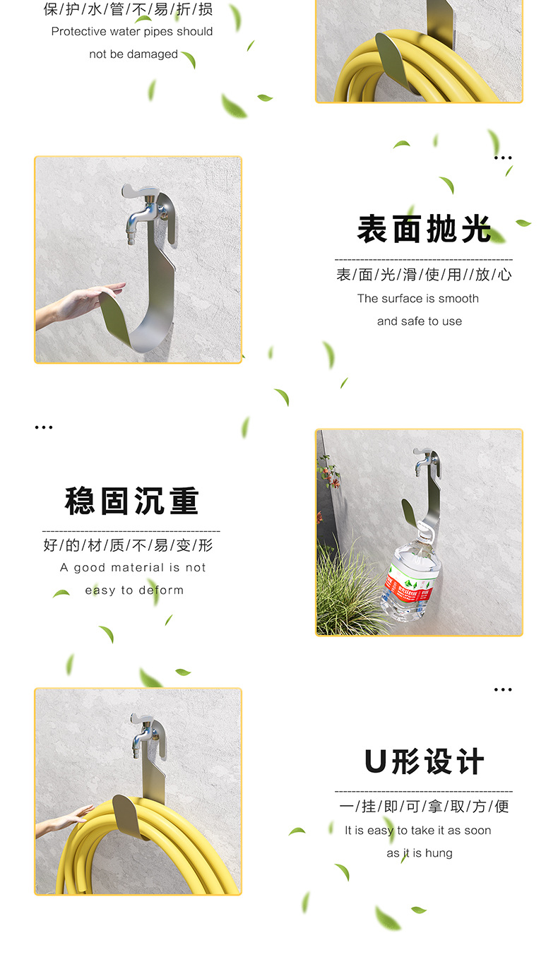 304 stainless steel garden wall-mounted hose storage rack household car wash hose faucet hook balcony wall mount