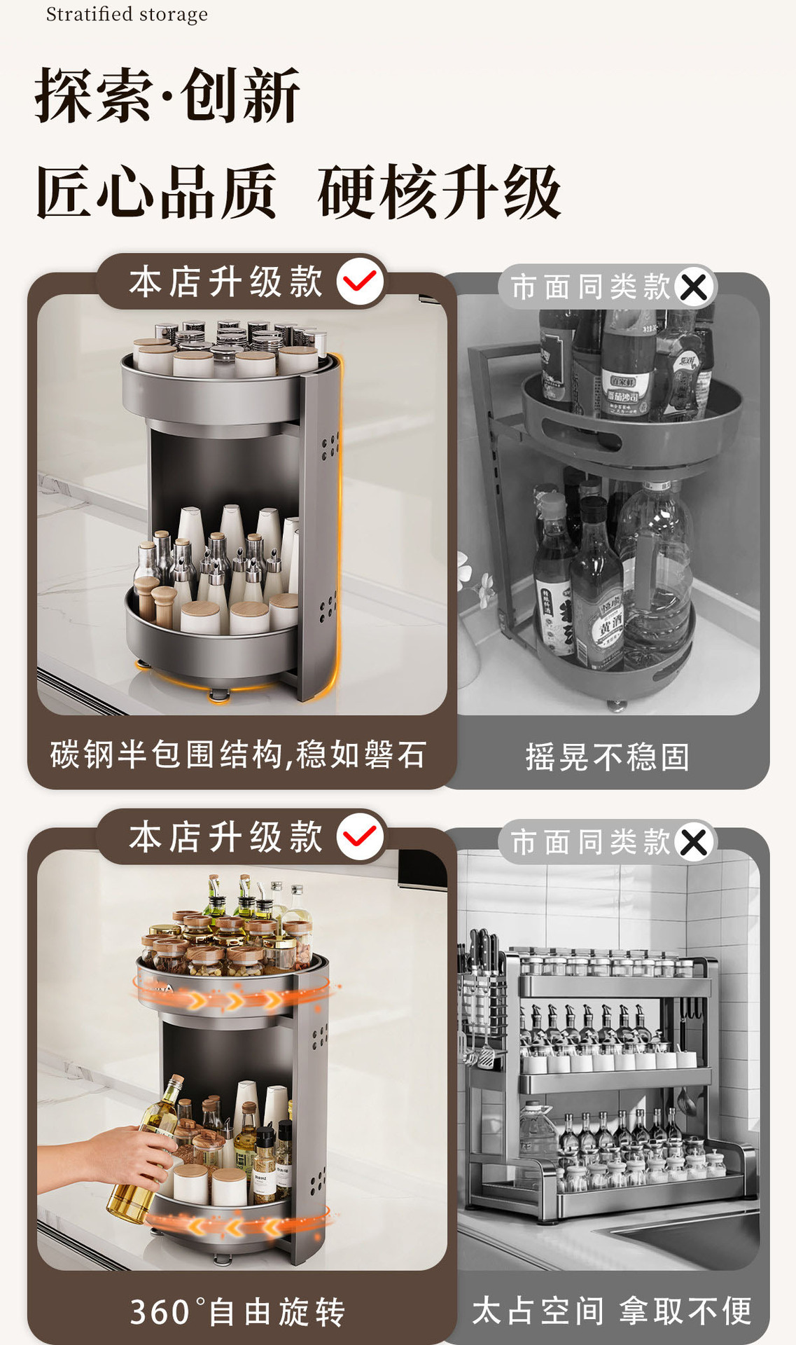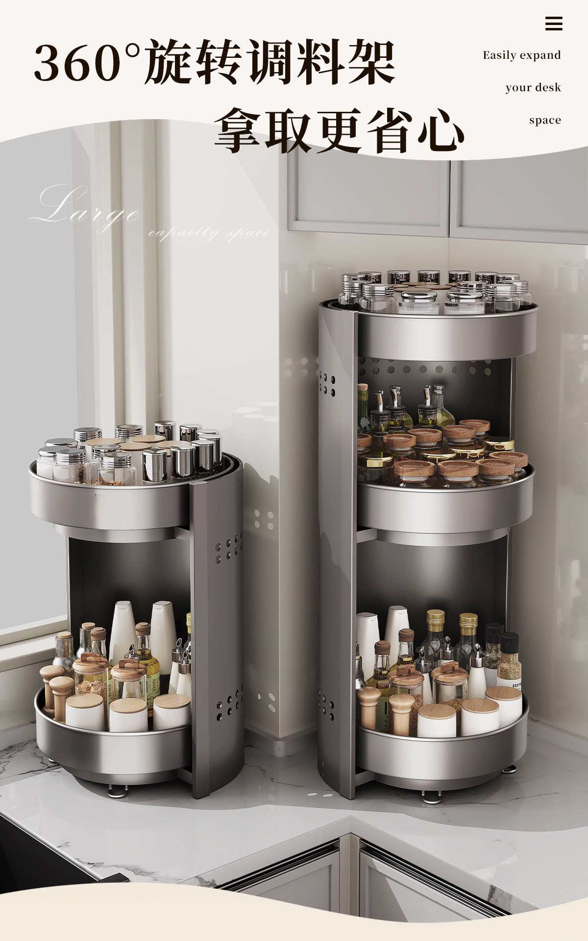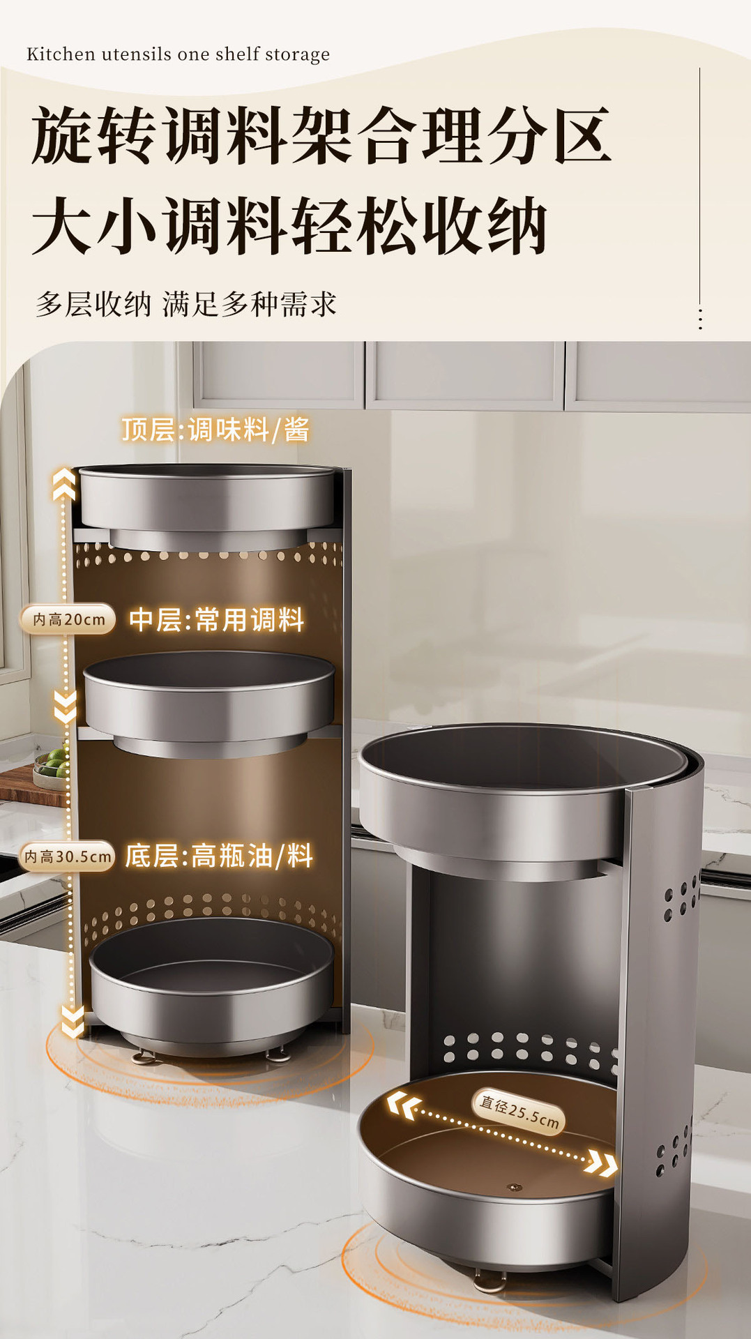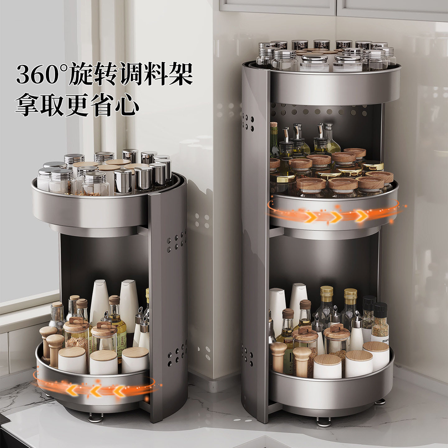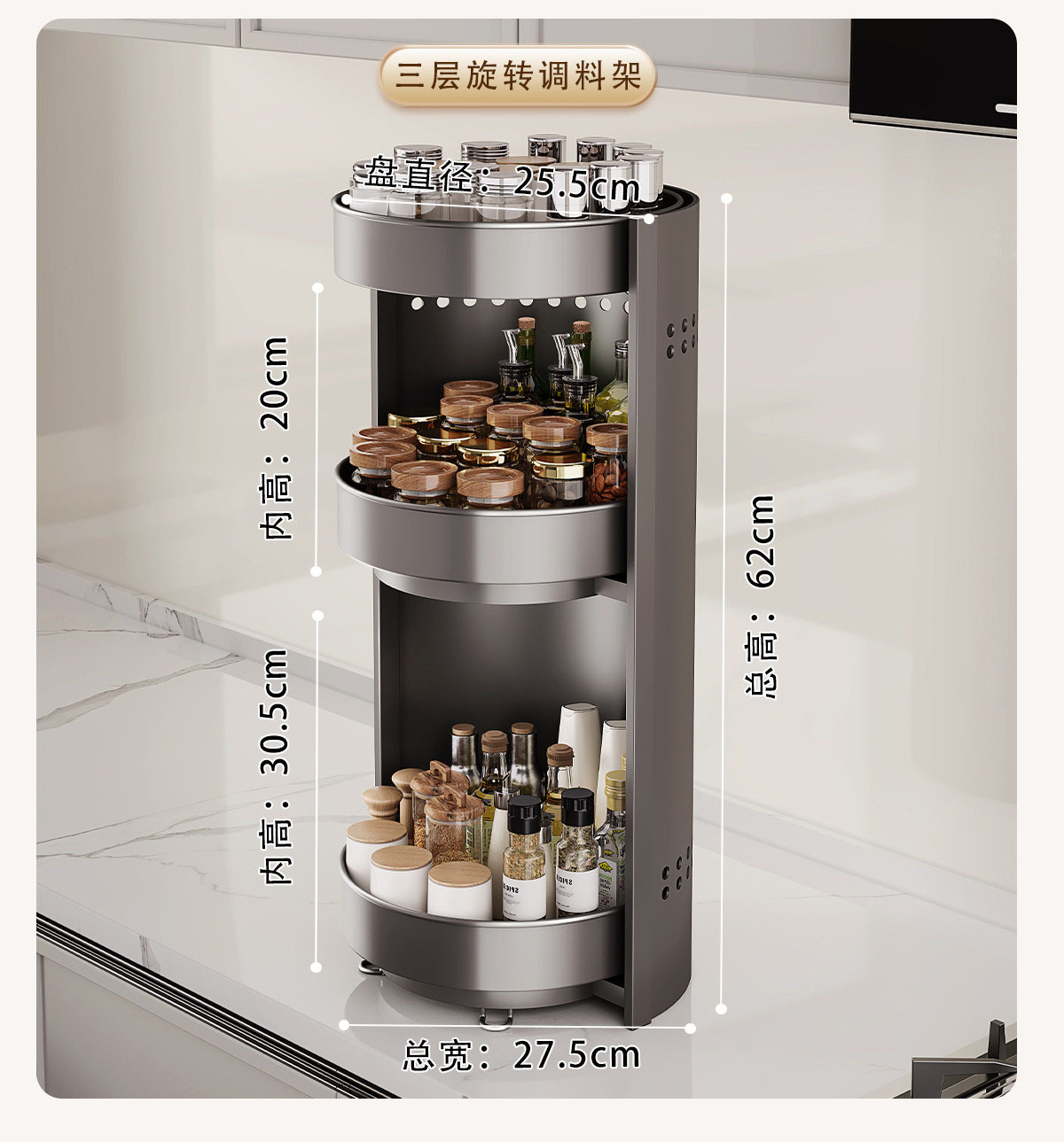 [gray] upgraded thickened three-layer seasoning rack [360-degree free rotation