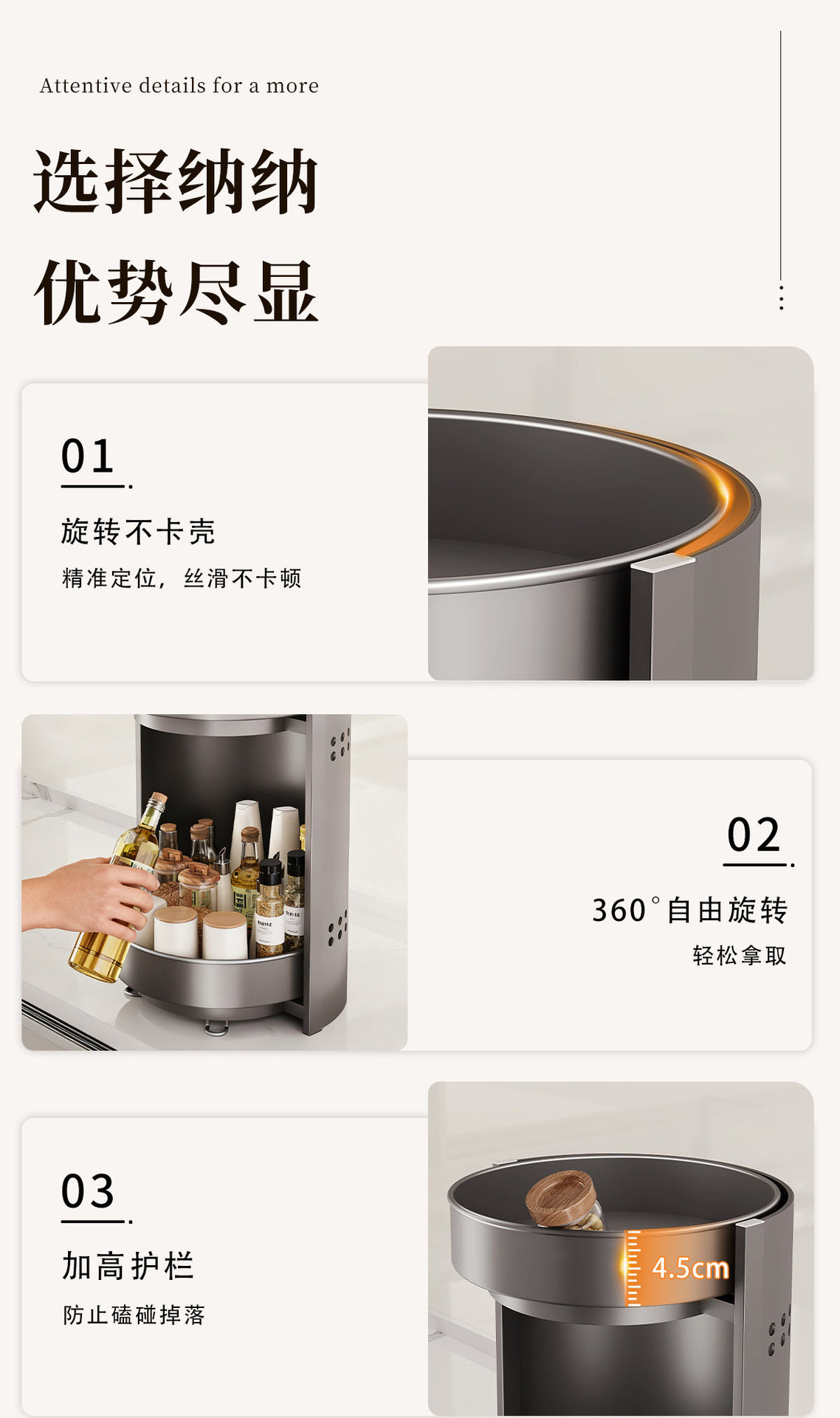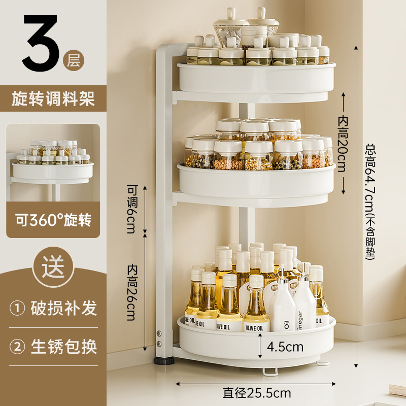 [milky white] upgraded thickened three-tier condiment rack [360-degree free rotation]