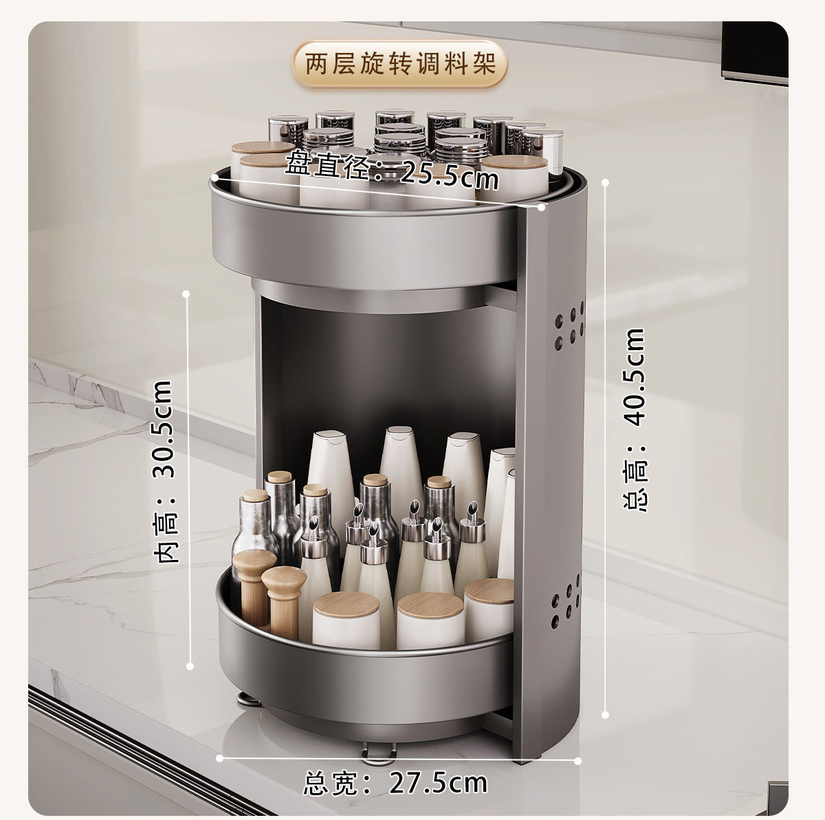 [gray] upgraded thickened two-tier seasoning rack [360-degree free rotation]