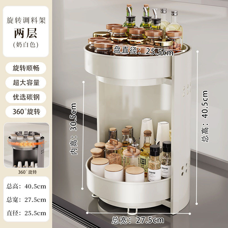[milk white] thickened two-tier condiment rack [360-degree free rotation]