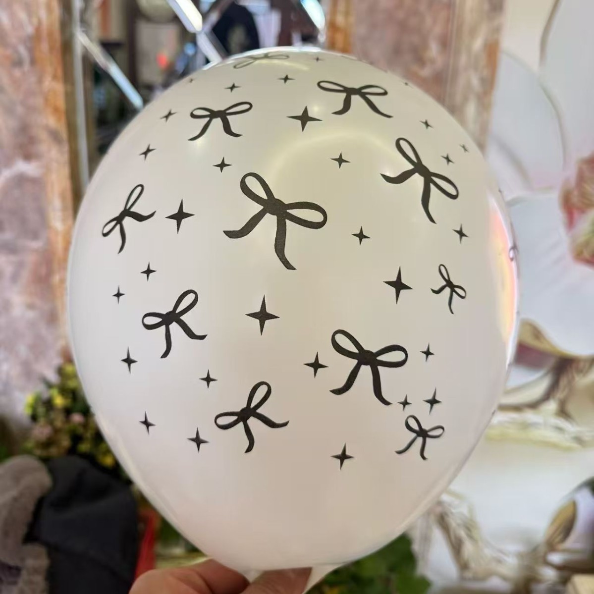 12-inch white balloon black bow