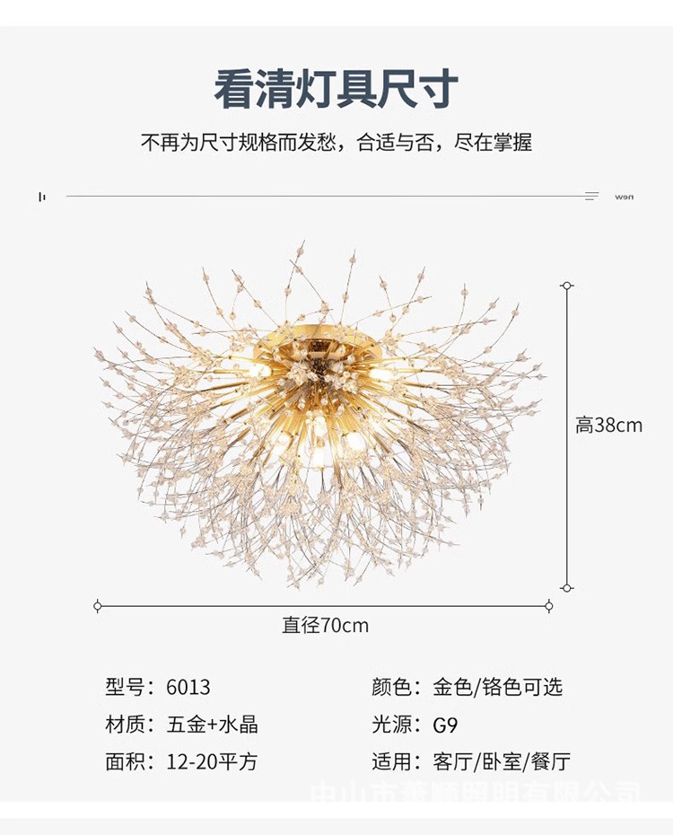nordic light luxury bedroom light restaurant chandelier living room dandelion ceiling light master bedroom room internet celebrity firefly lighting fixture