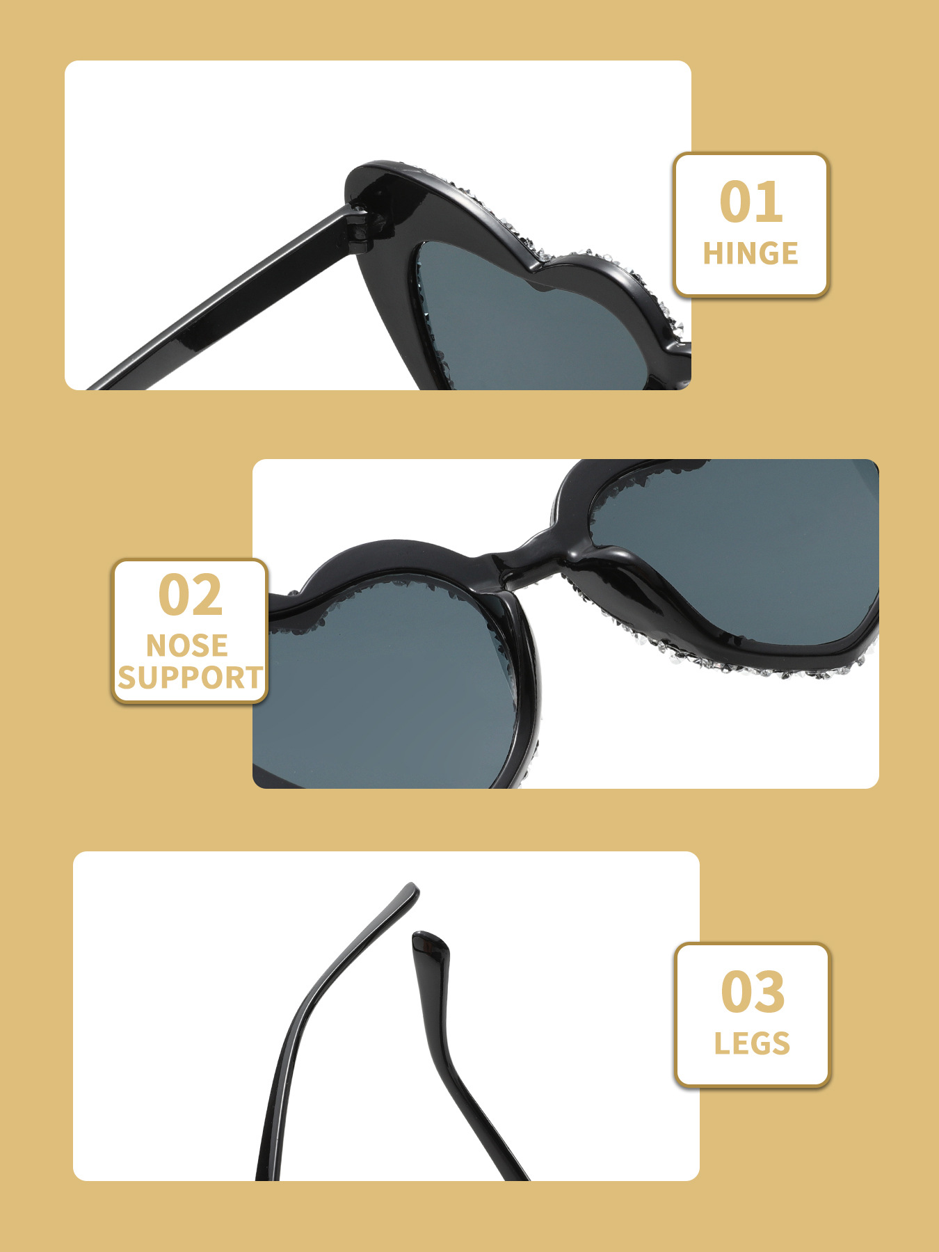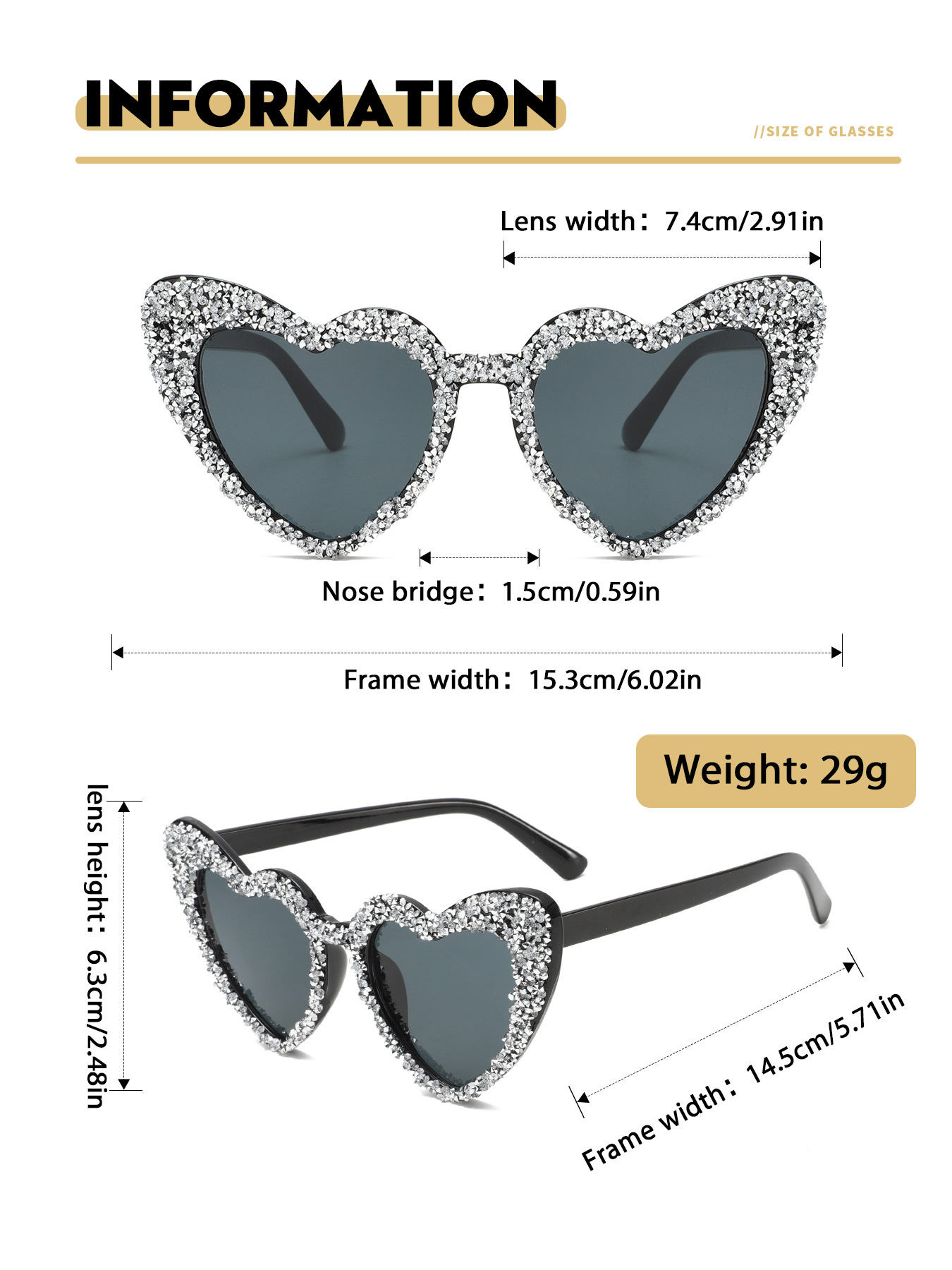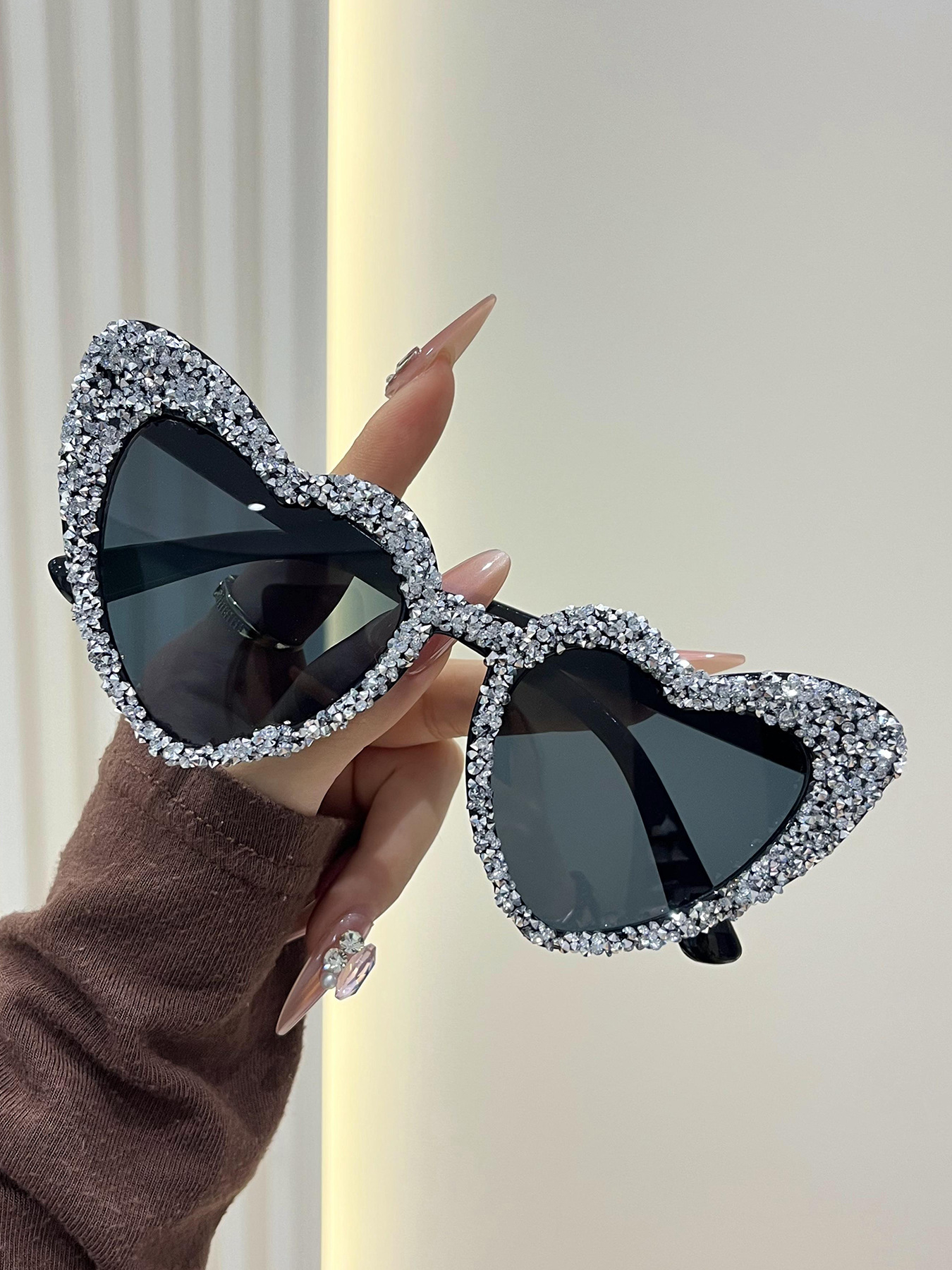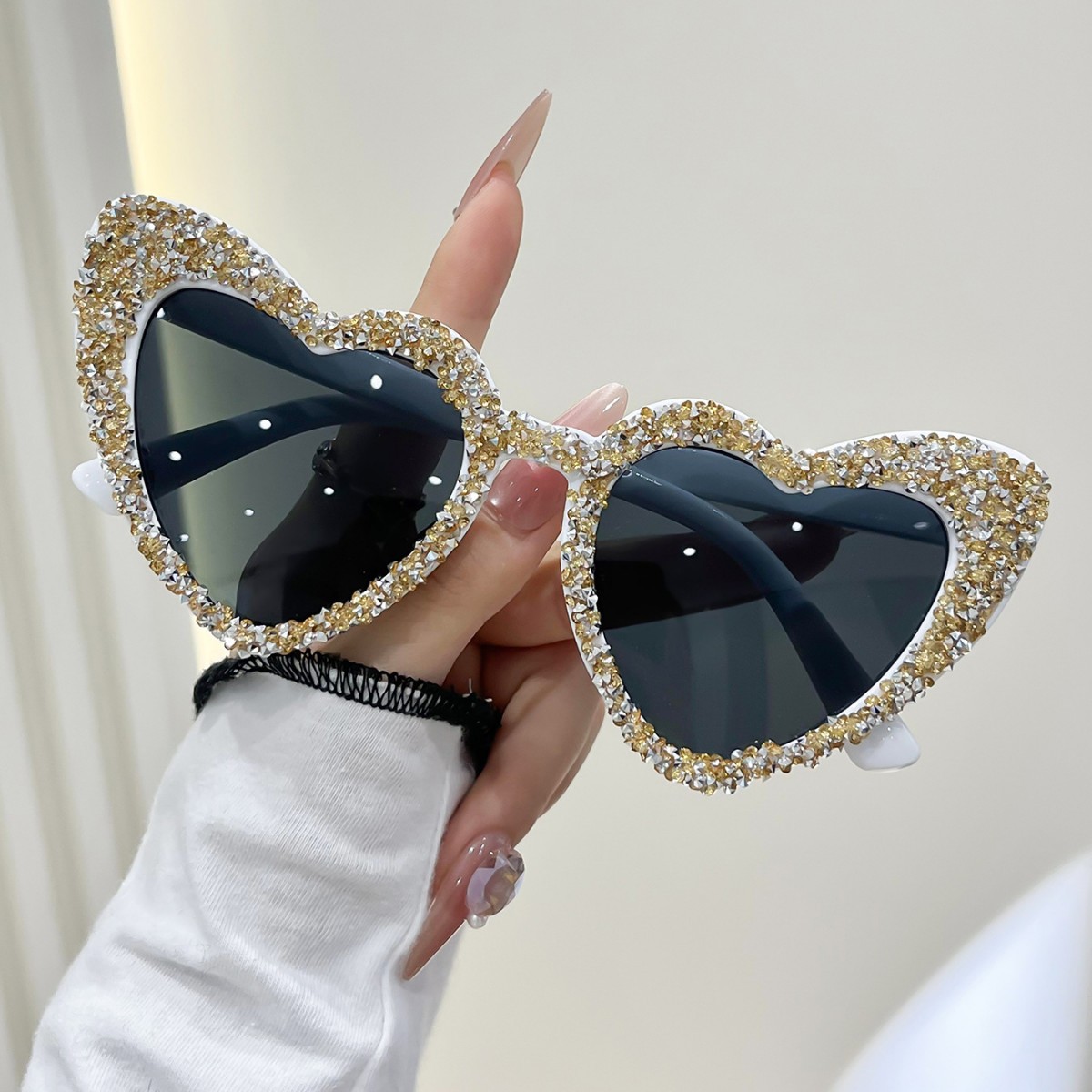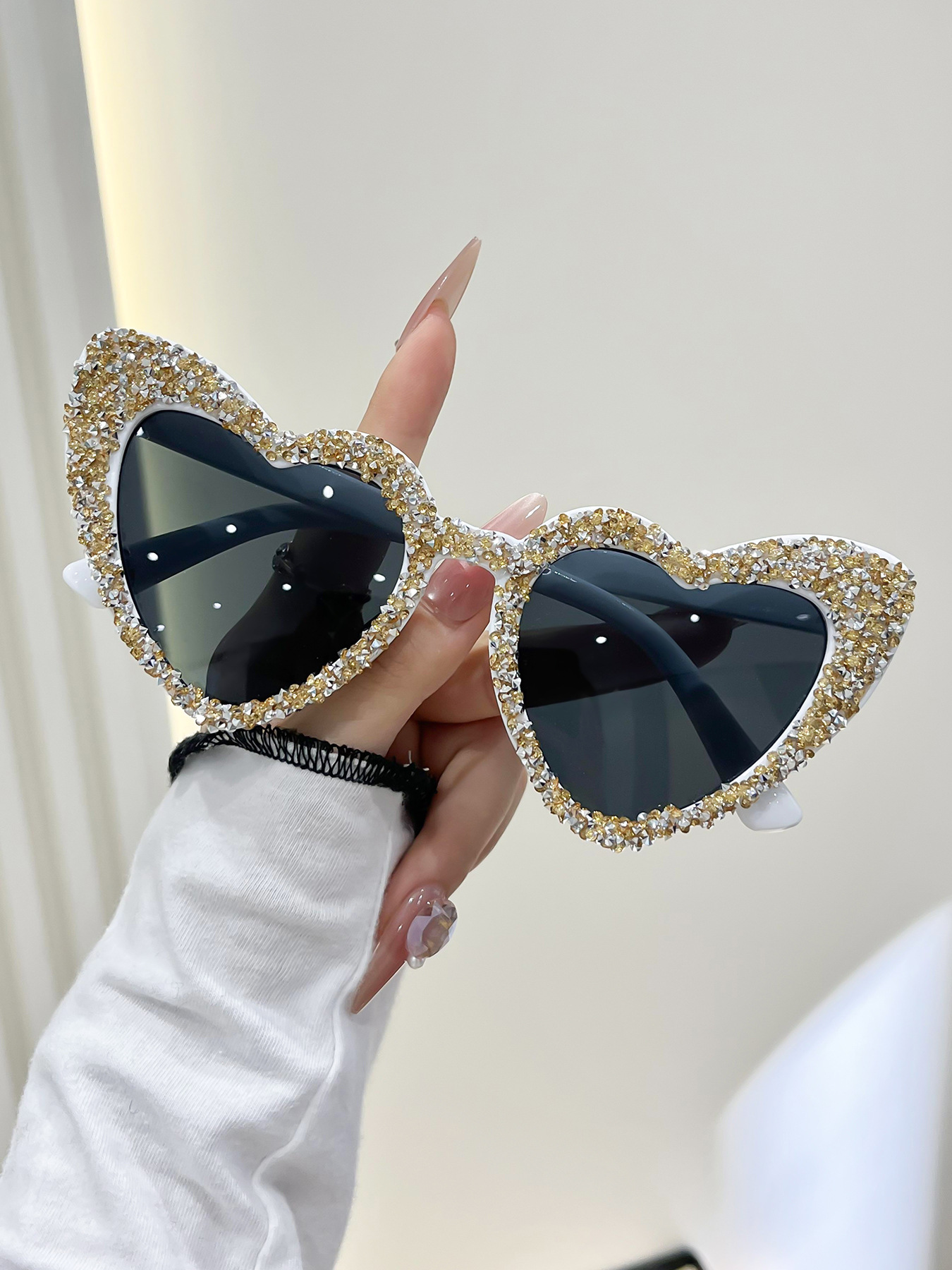a09 randomly drilled heart-5598# [white rhinestones, black frame]