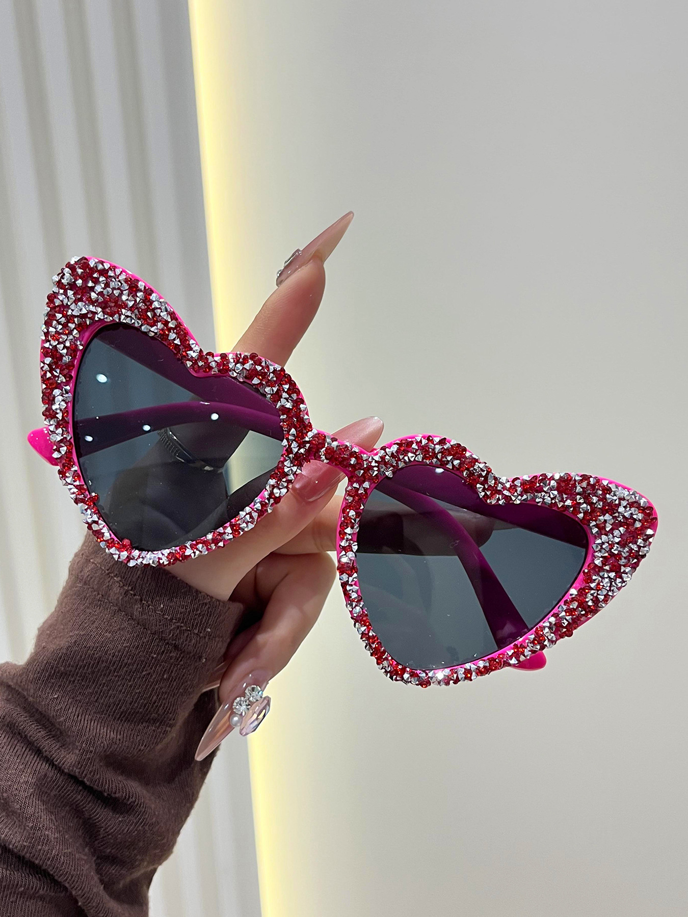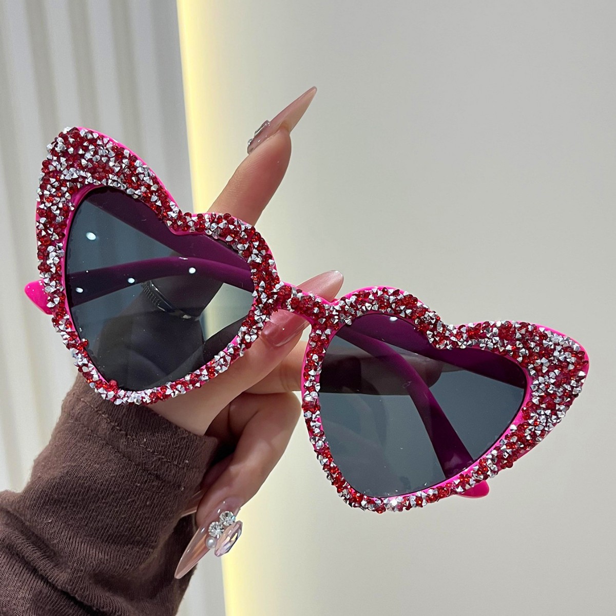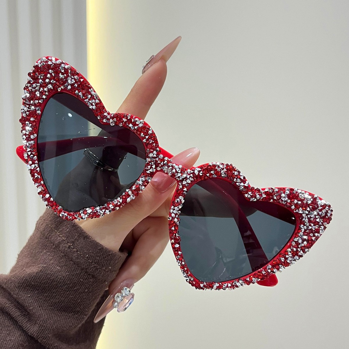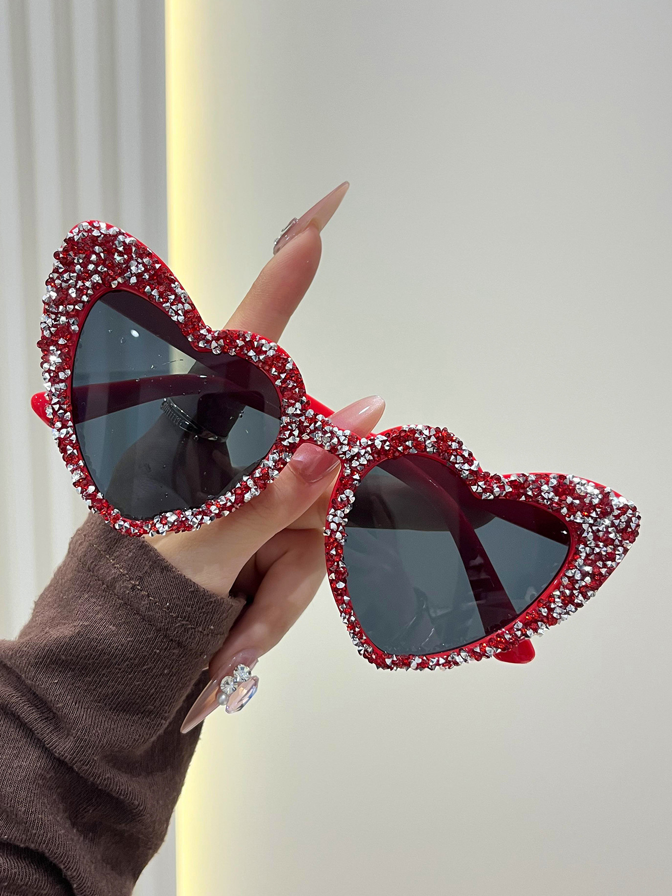 a09 randomly drilled heart-5598# [bright red rhinestones]