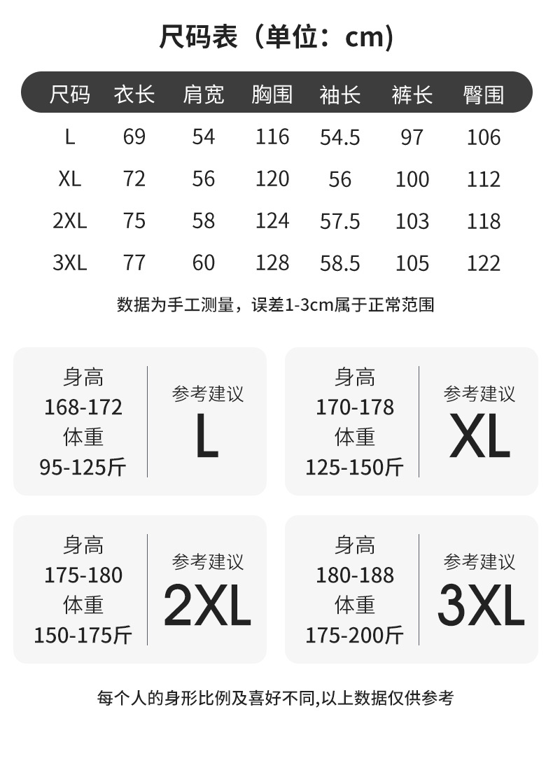 | 3xl size: height 180–188 cm, weight 90–105 kg. | CN¥ 0.0 |