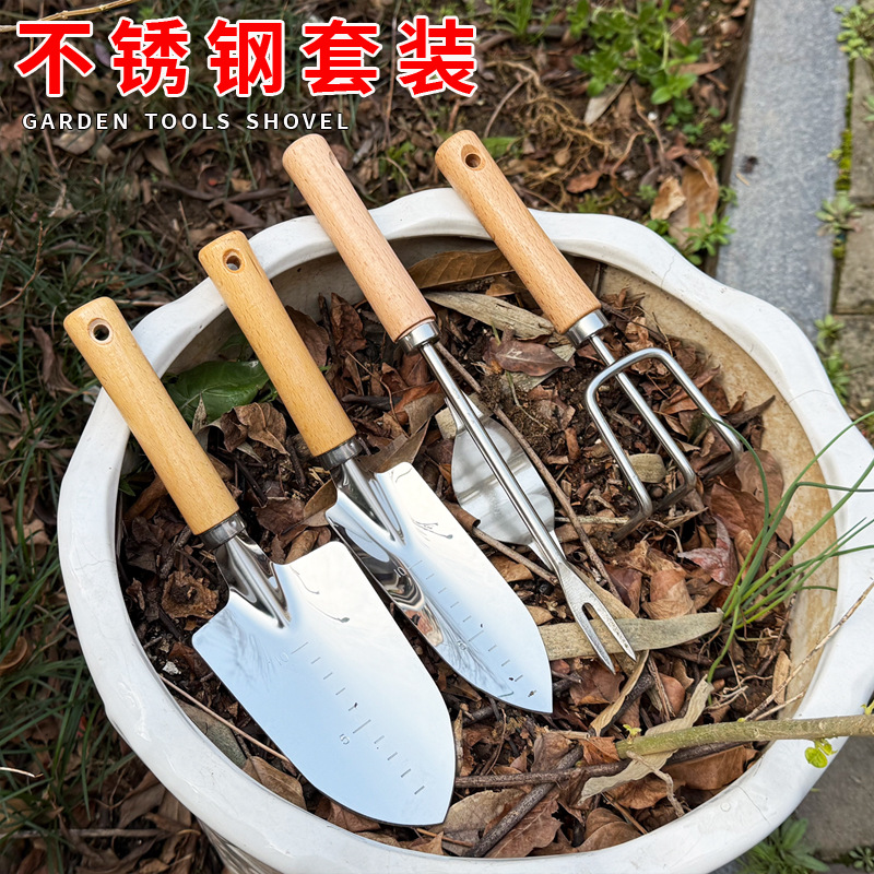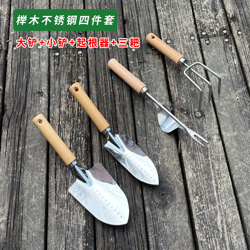 great value four-piece set: large shovel + ploughstaff + three-pronged rake + uproot tool