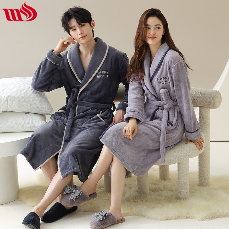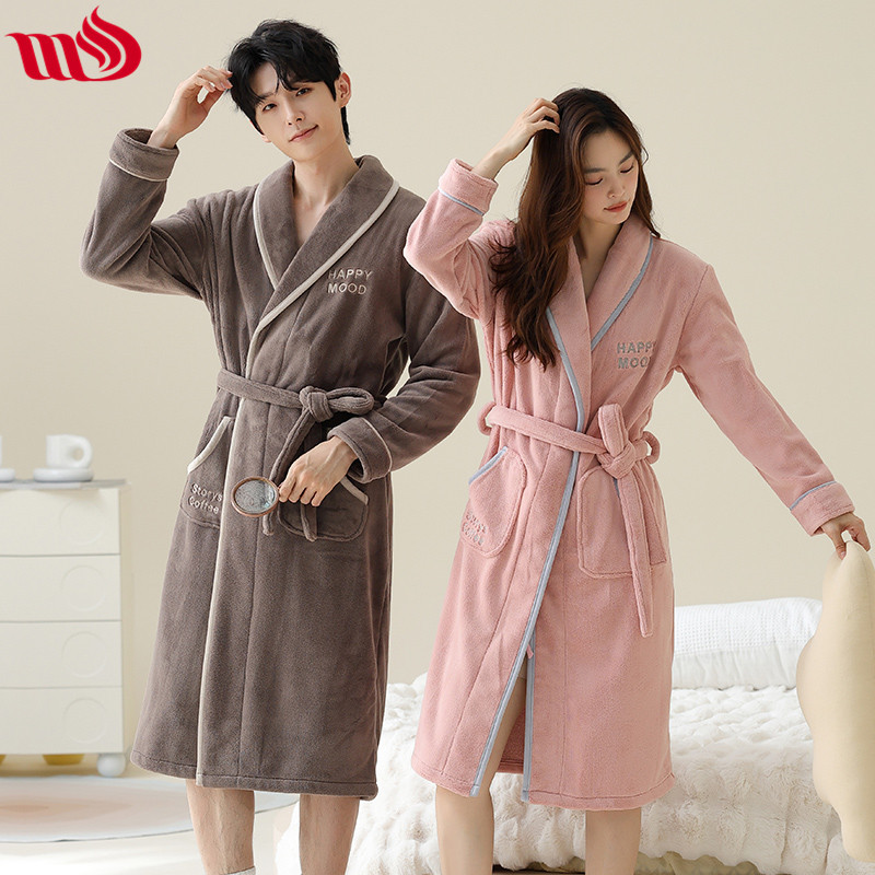 longshijia couple nightgown autumn and winter thickened with flannel men's and women's pajamas bathrobe coral fleece home wear