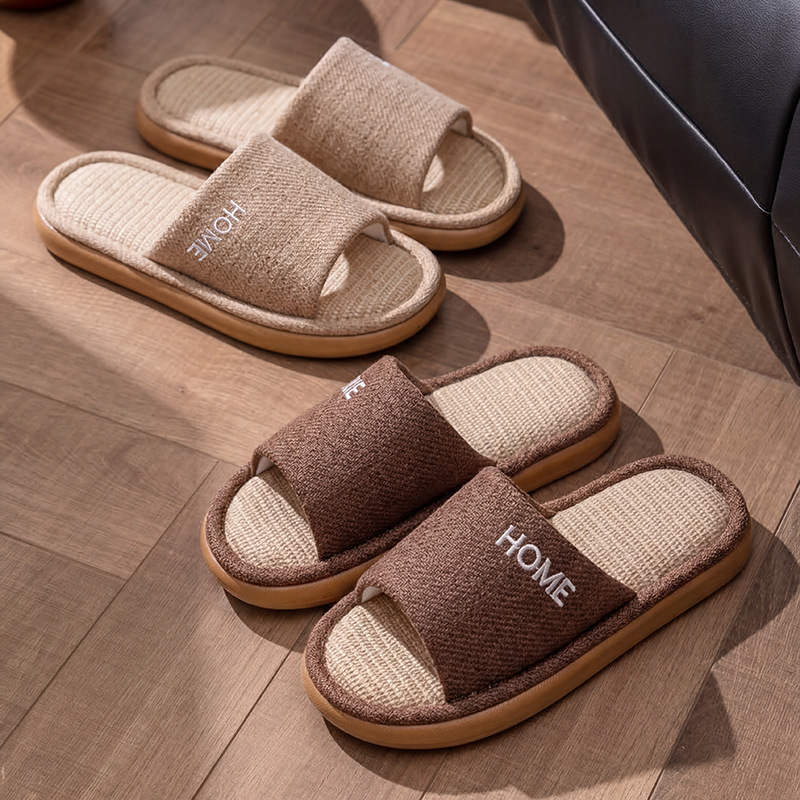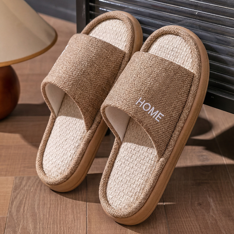 linen slippers for women, all-season, spring and autumn, thick-soled diablement fort, summer indoor home non-slip men's wholesale