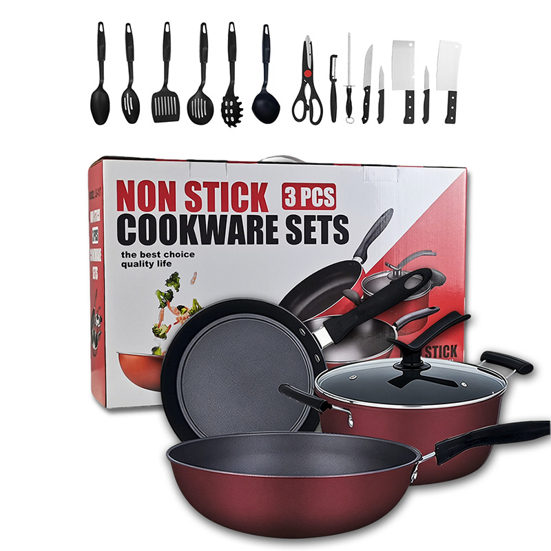 chinese red three-piece set +14pcs plastic tableware