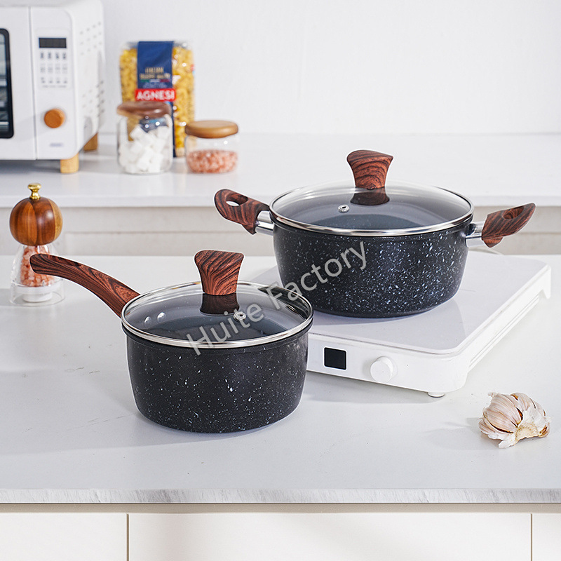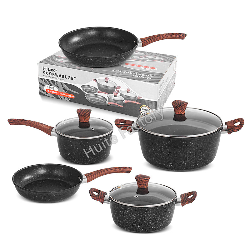 wood grain handle medical stone 8-piece set +6pcs plastic tableware