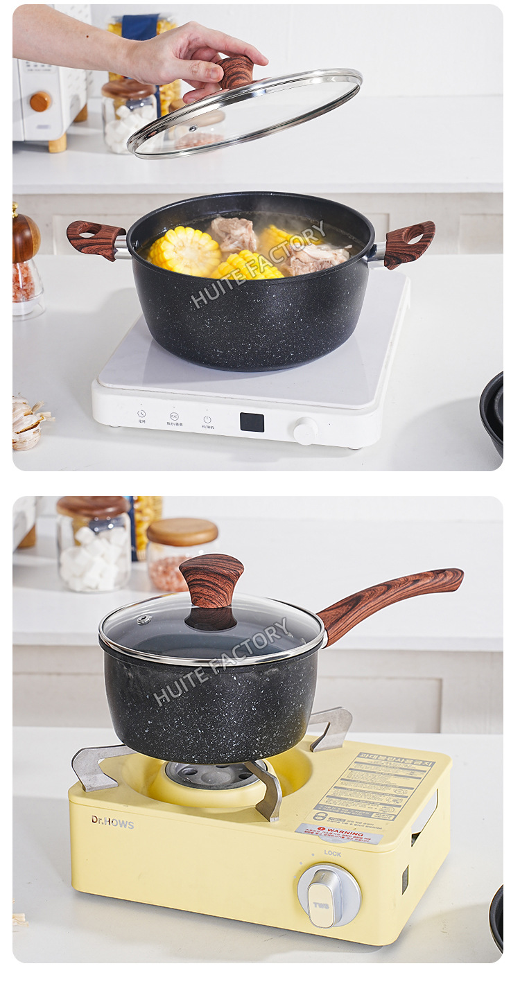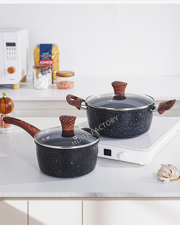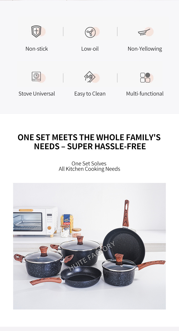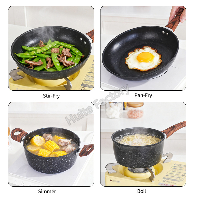 wood grain handle medical stone 8-piece set +14pcs plastic tableware