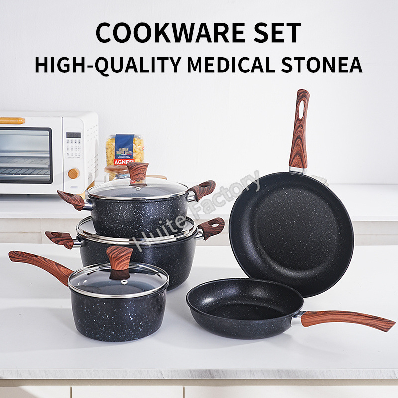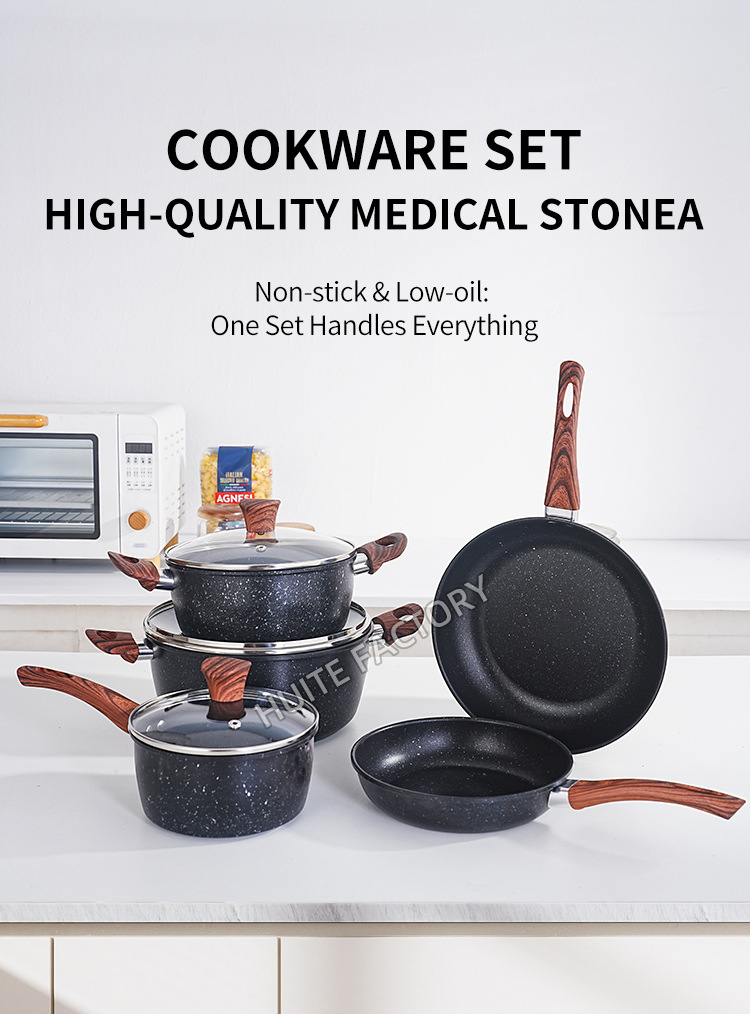 wood grain handle medical stone 8-piece set