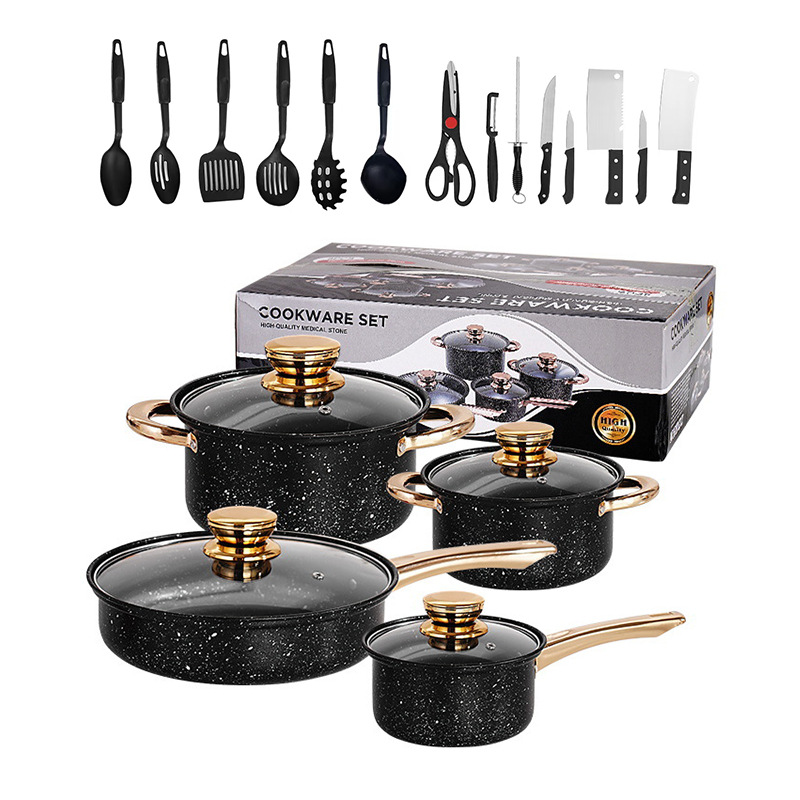 gold handle medical stone 8-piece set +14pcs plastic tableware