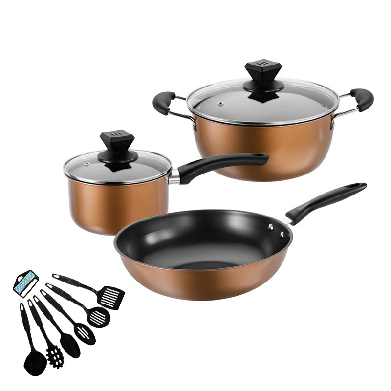 gold three-piece set +6pcs plastic tableware