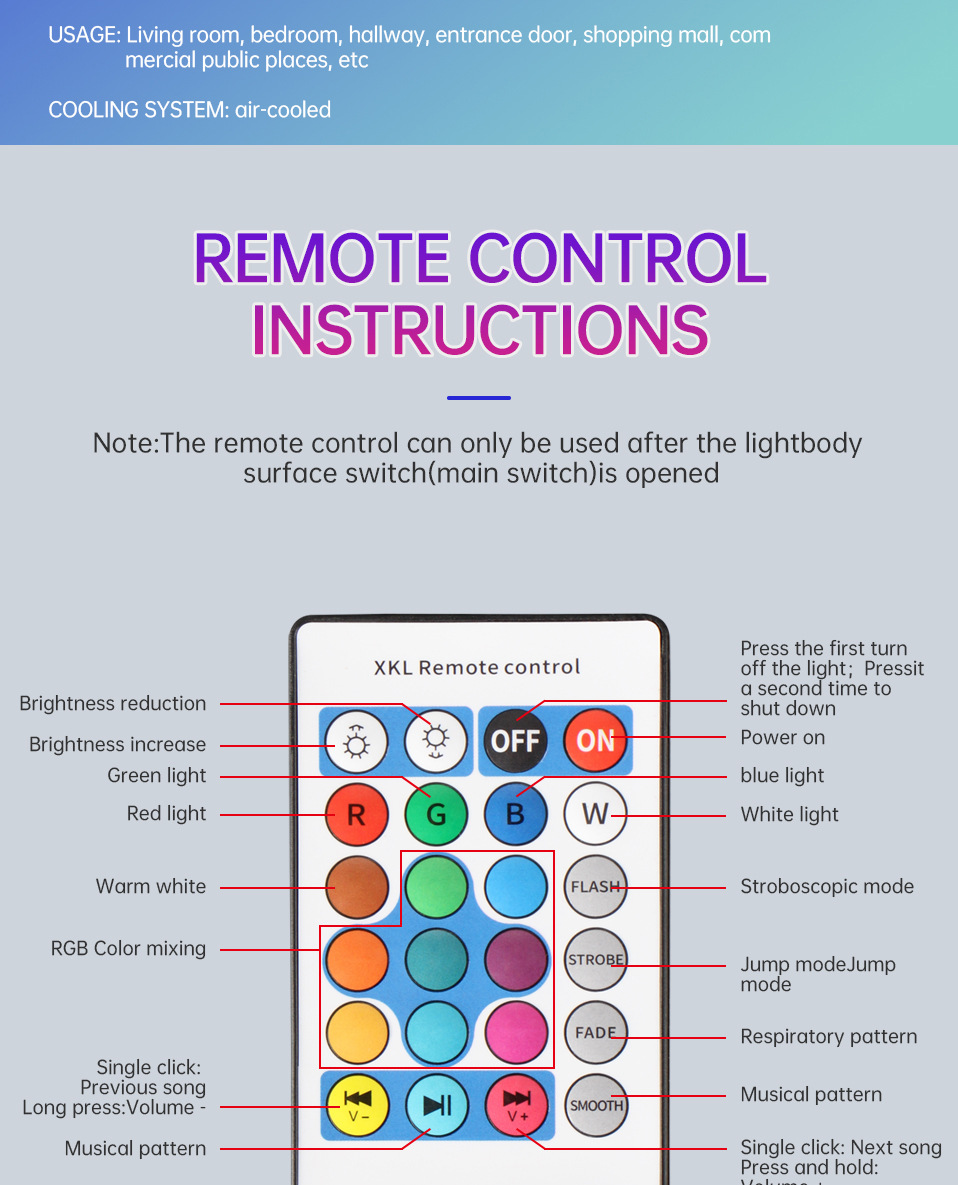 additional features: bluetooth, remote control, stereo, rechargeable, music playback