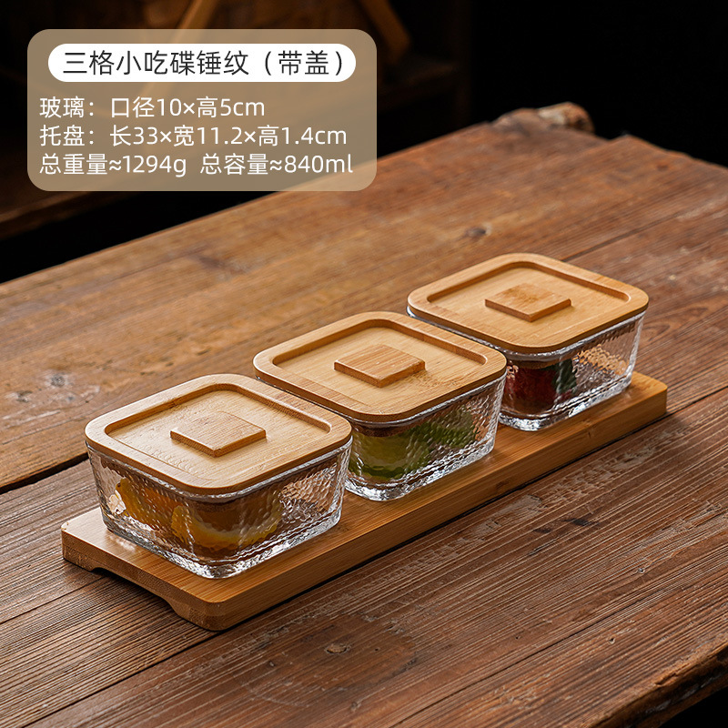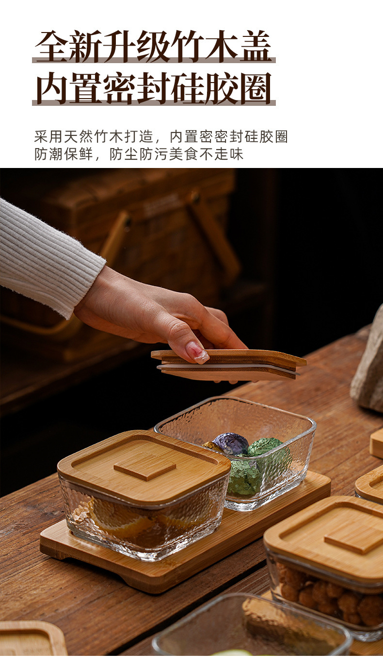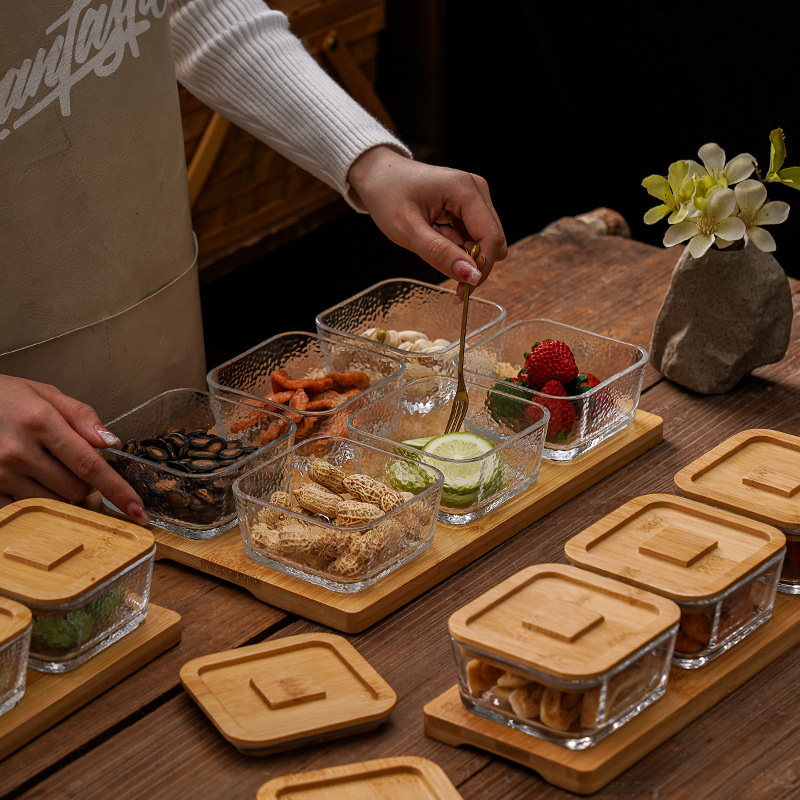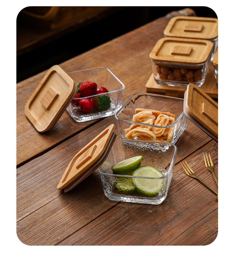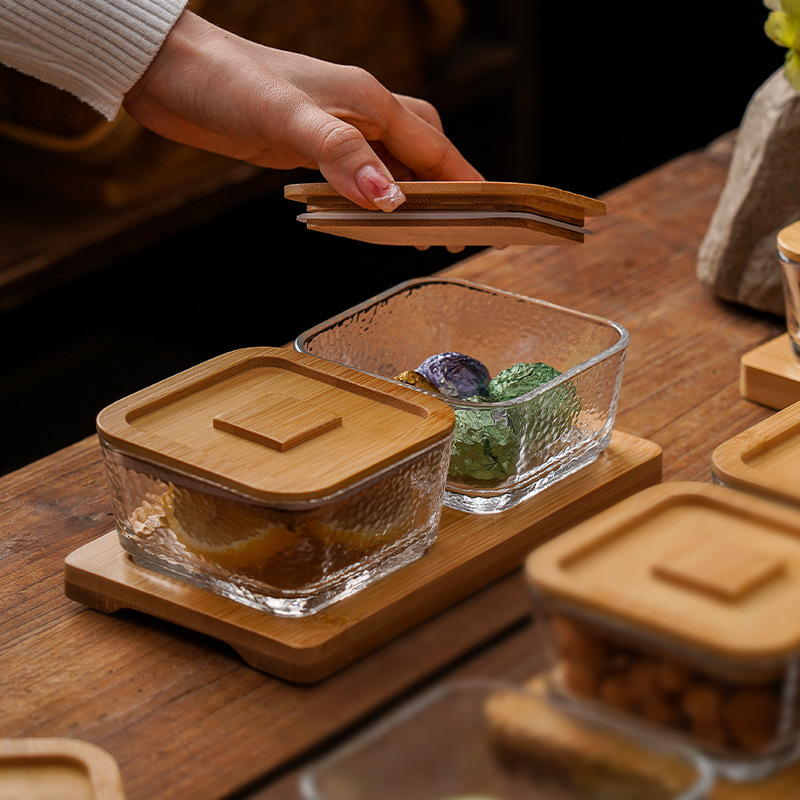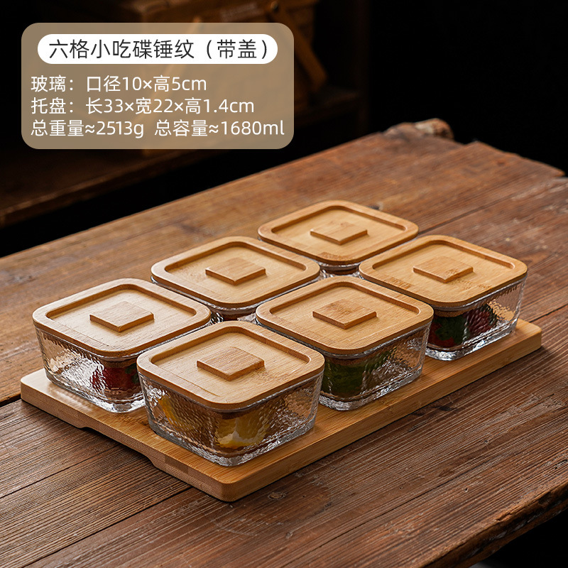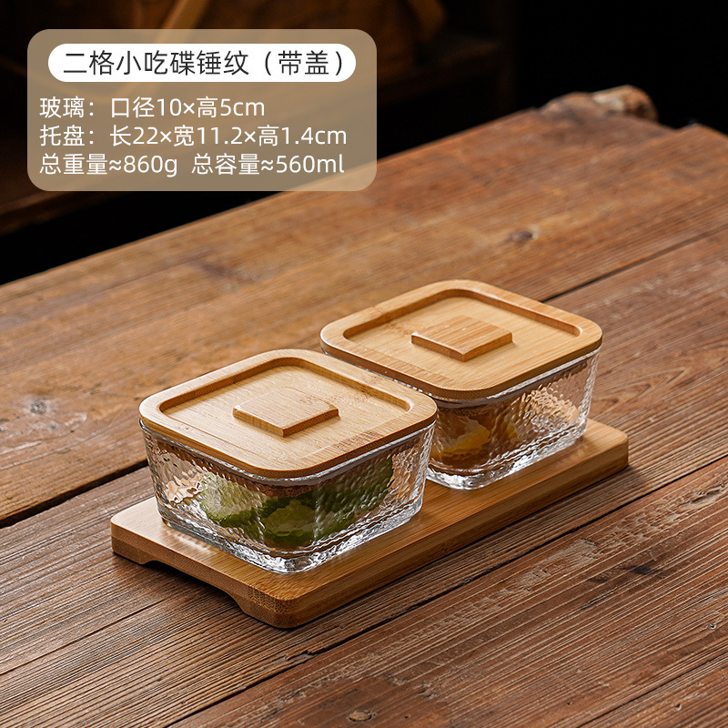 square hammered large bowl [sealed cover] 2-grid wood color