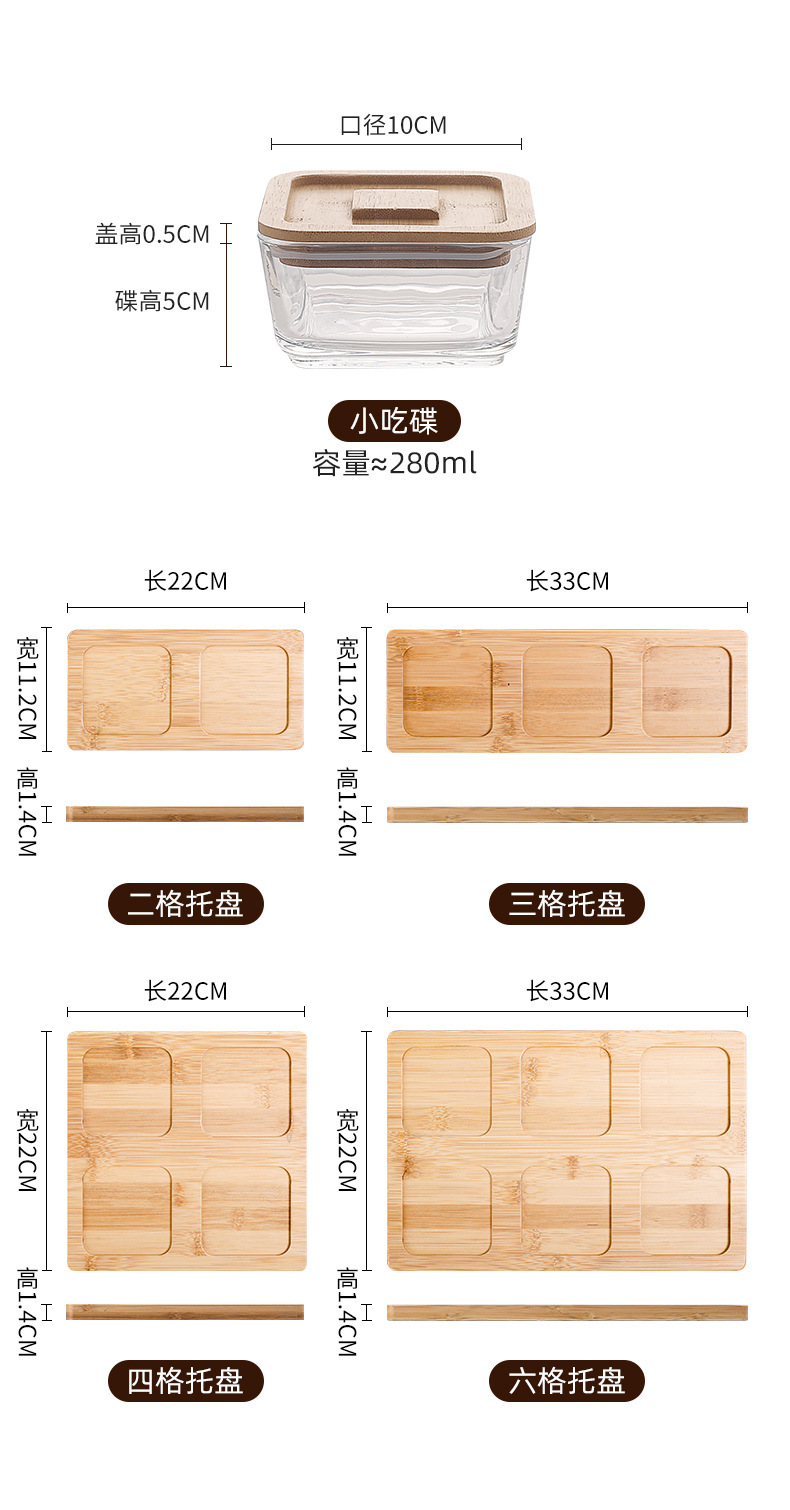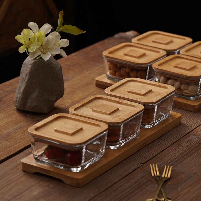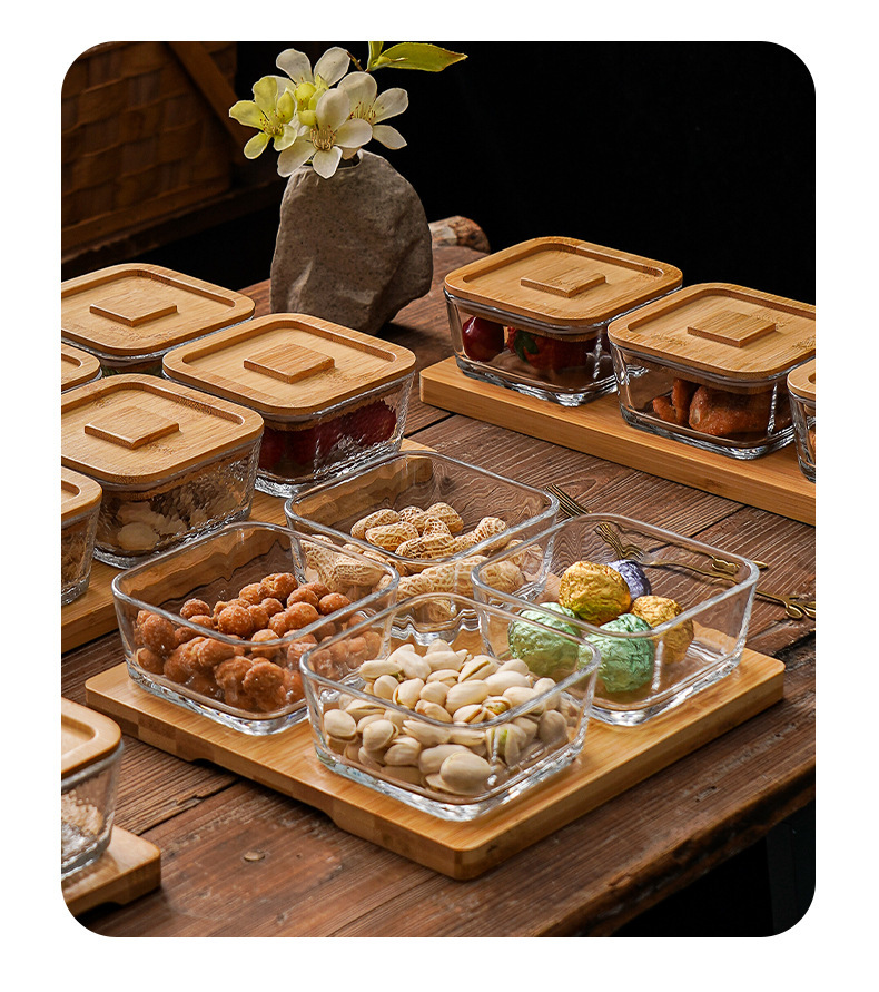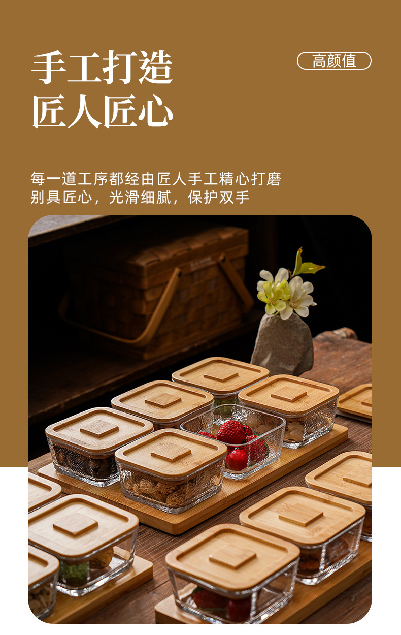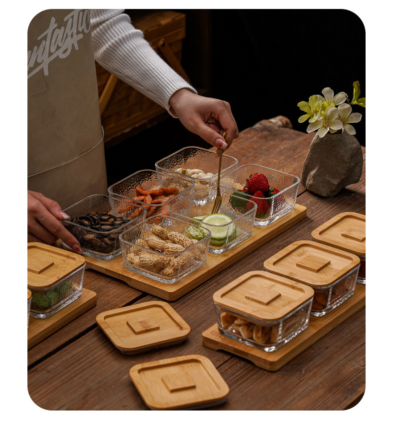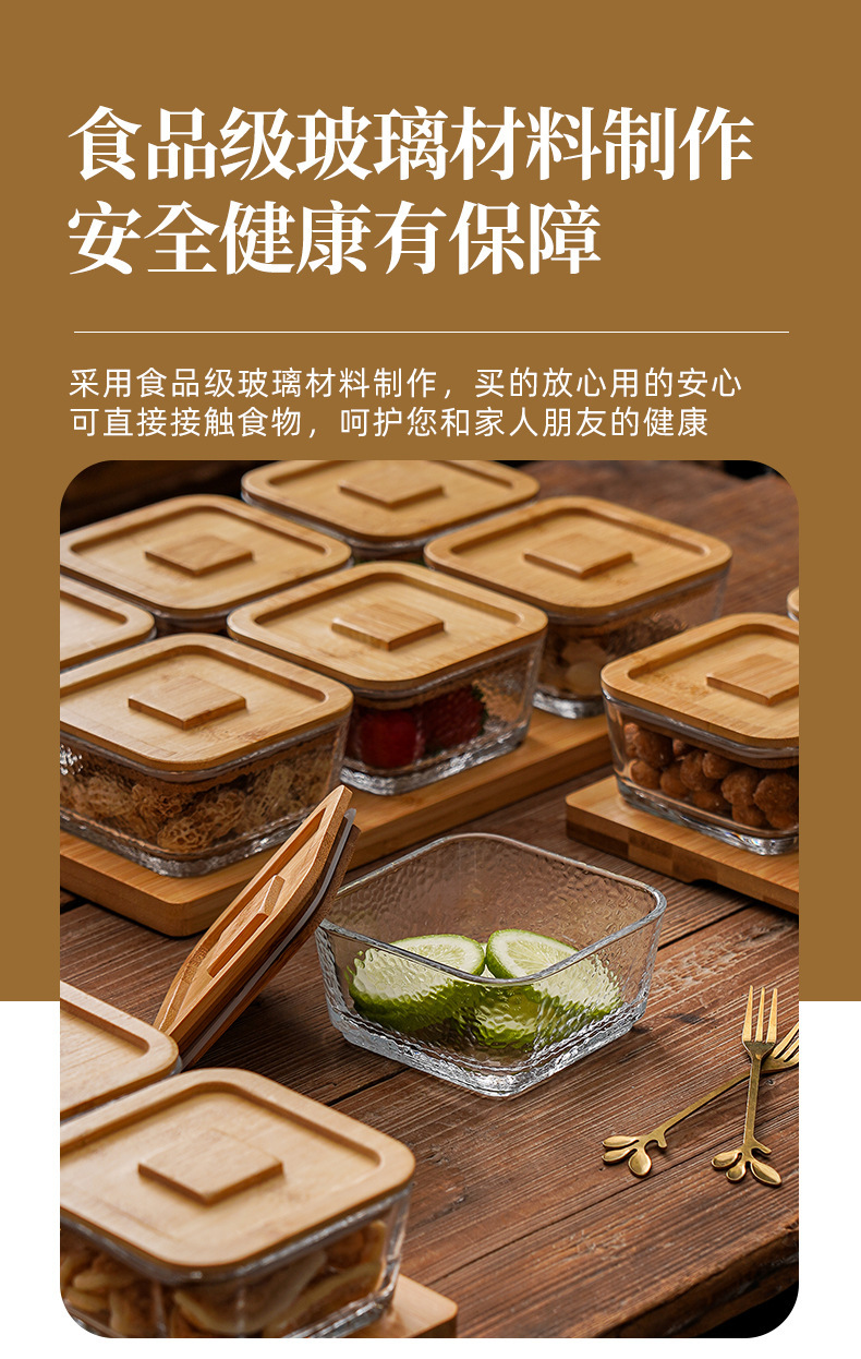 square hammered large bowl [sealed cover] 2-grid wood color
