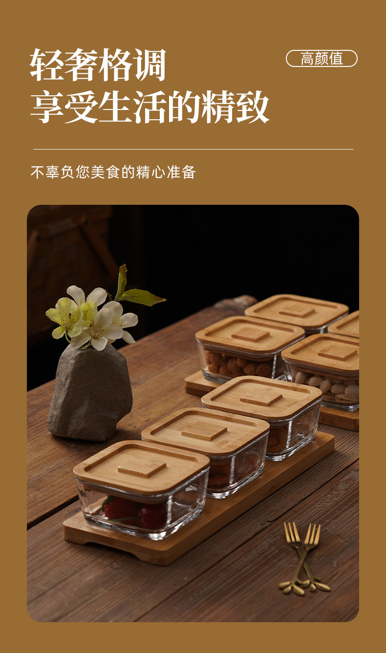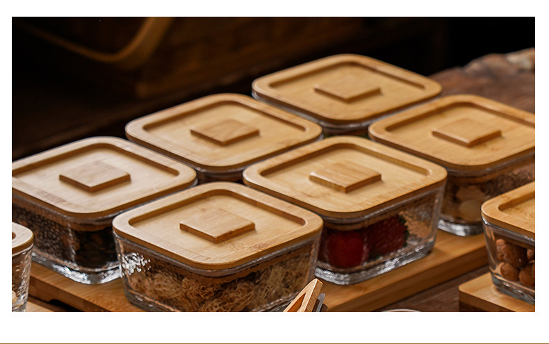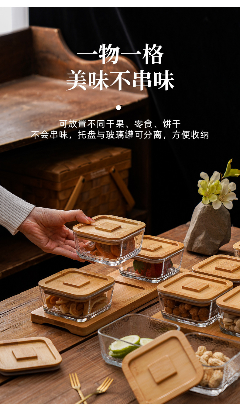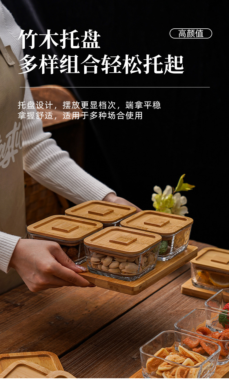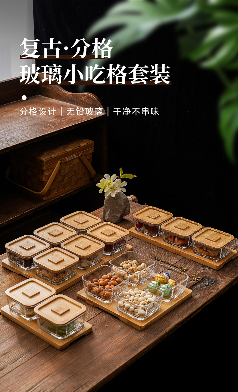 square hammered large bowl [sealed cover] 2-grid wood color
