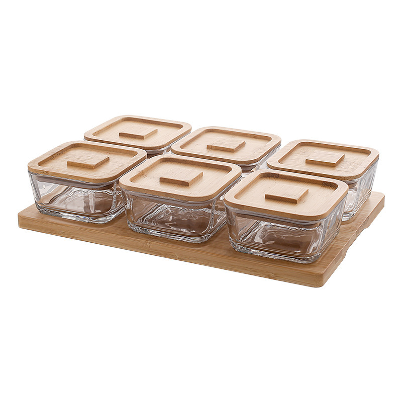 square hammered large bowl [seal cover] 6 grid wood color