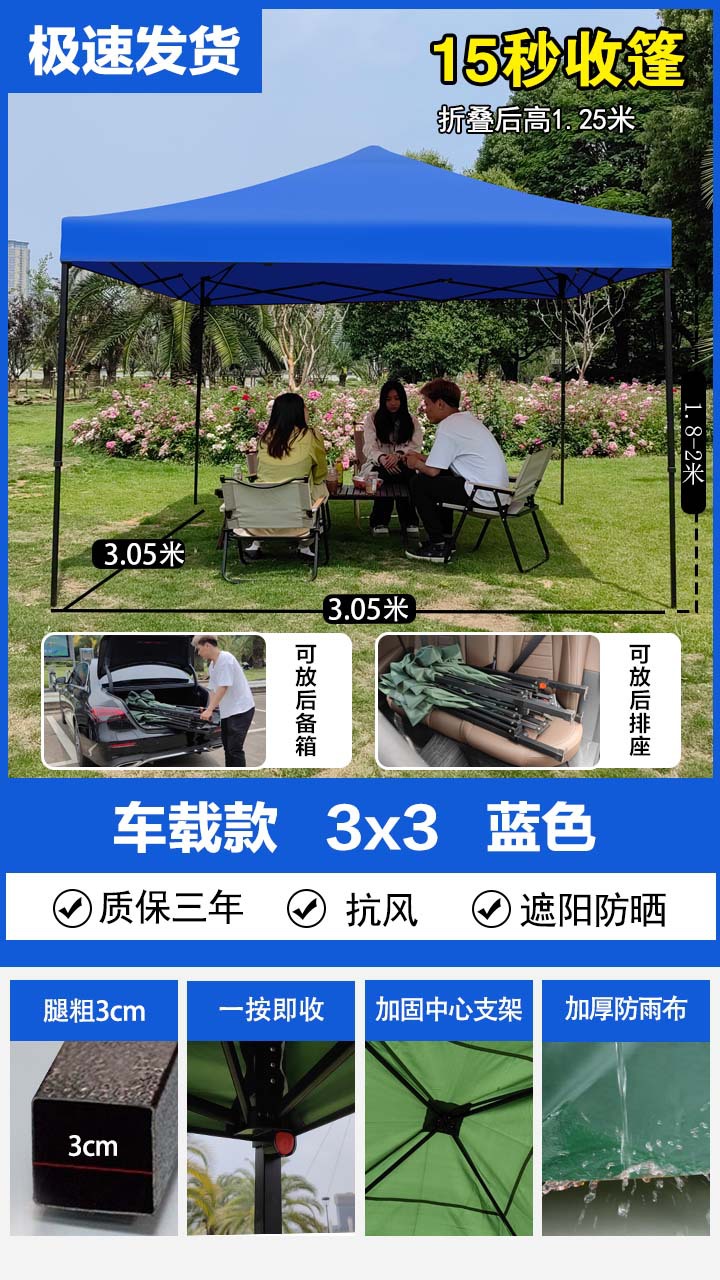 car 2x3 + three sides protection cloth blue