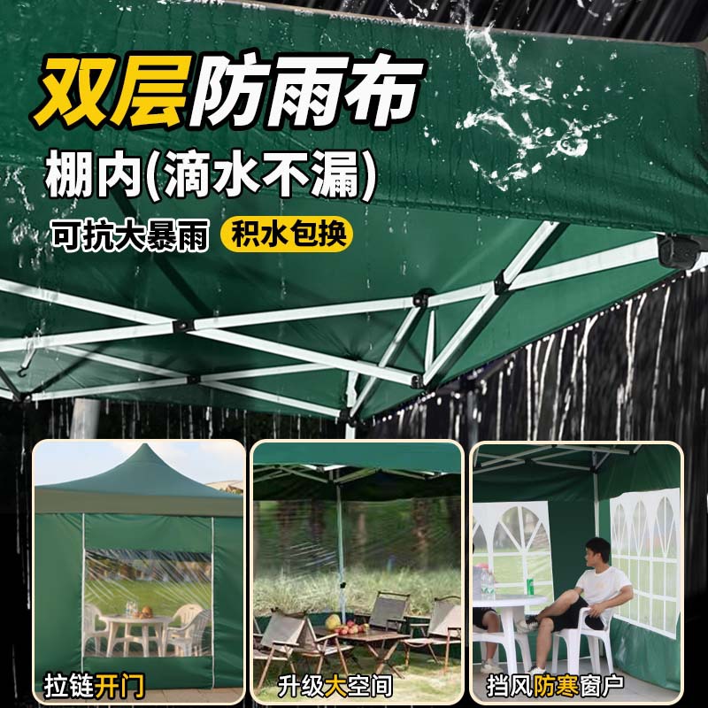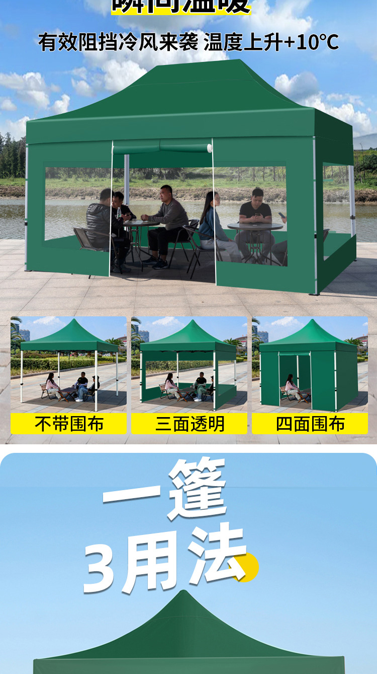 thickened automatic rack 3x6+3 sides protection cloth dark green [protection cloth detachable windproof and water resistant]]