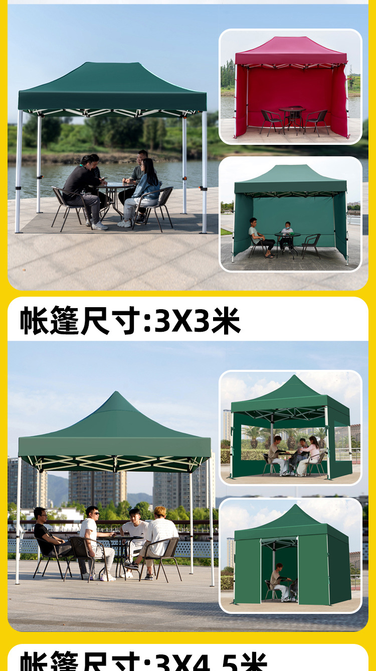 thickened automatic rack 3x3+4 sides protection cloth dark green [protection cloth detachable windproof and water resistant]]