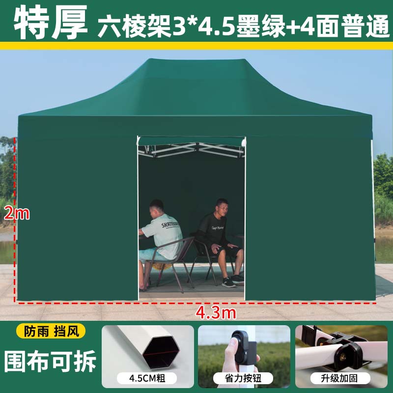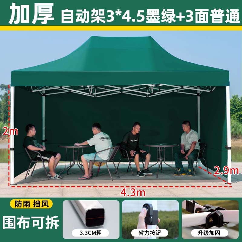 thickened automatic rack 3 x4.5 +4 sides protection cloth dark green [protection cloth detachable windproof and water resistant]]